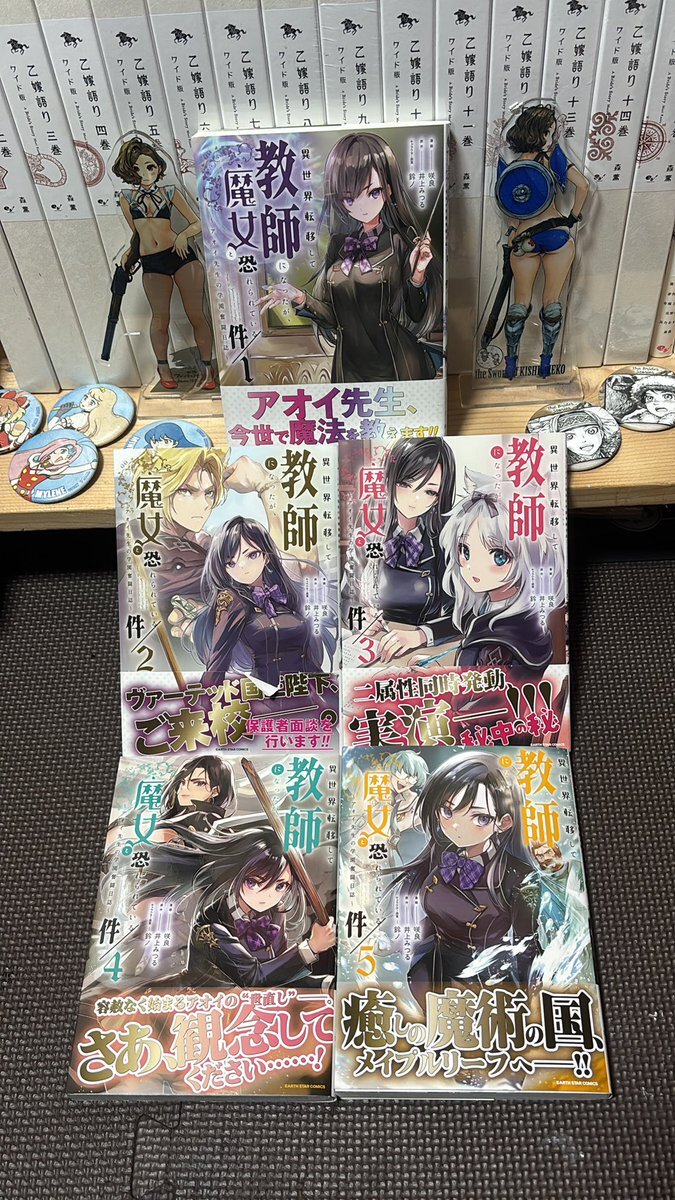 #今日買った漫画 #咲良 /#井上みつる #異世界転移して教師になったが、魔女と恐れられている件〜アオイ先生の学園奮闘日誌〜 1.2.3.4.5 1巻読んで大人買い。最近物欲が抑えきれない…金欠どうしよう(笑) こだわってるわけでは無いけど、まとめて買って全部初版だと嬉しい♪ pic.x.com/WSw2VQB1Ct