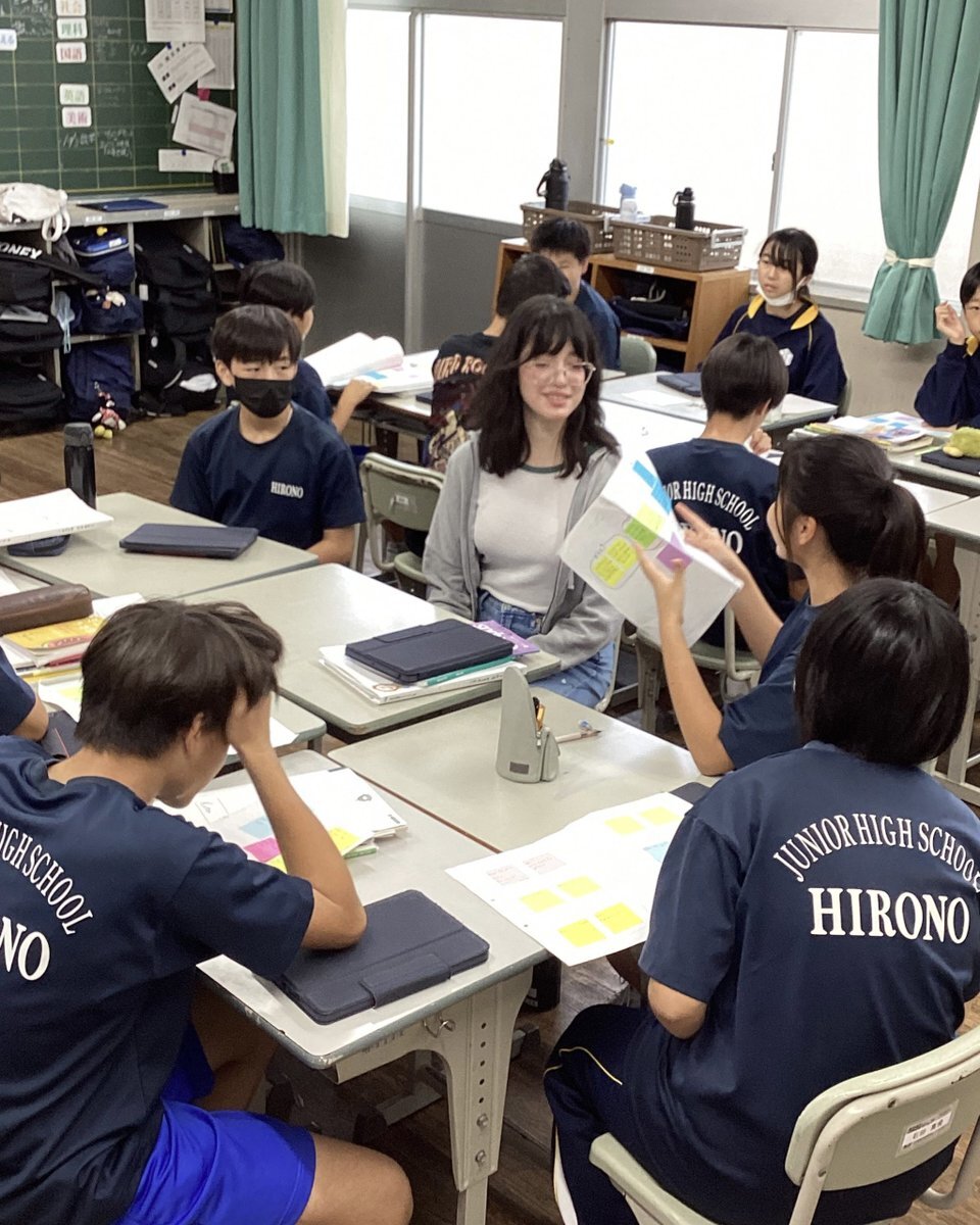 広野中で東日本国際大学の留学生と中学生が英語交流!授業や給食を共にし、文化紹介や意見交換で笑顔が広がる温かい時間に。「英語って楽しい」「もっと話したい」との声も!異文化理解と新たなつながりを実感✨ #国際交流 #グローバル教育 #異文化体験 pic.x.com/3csjwhUK3G