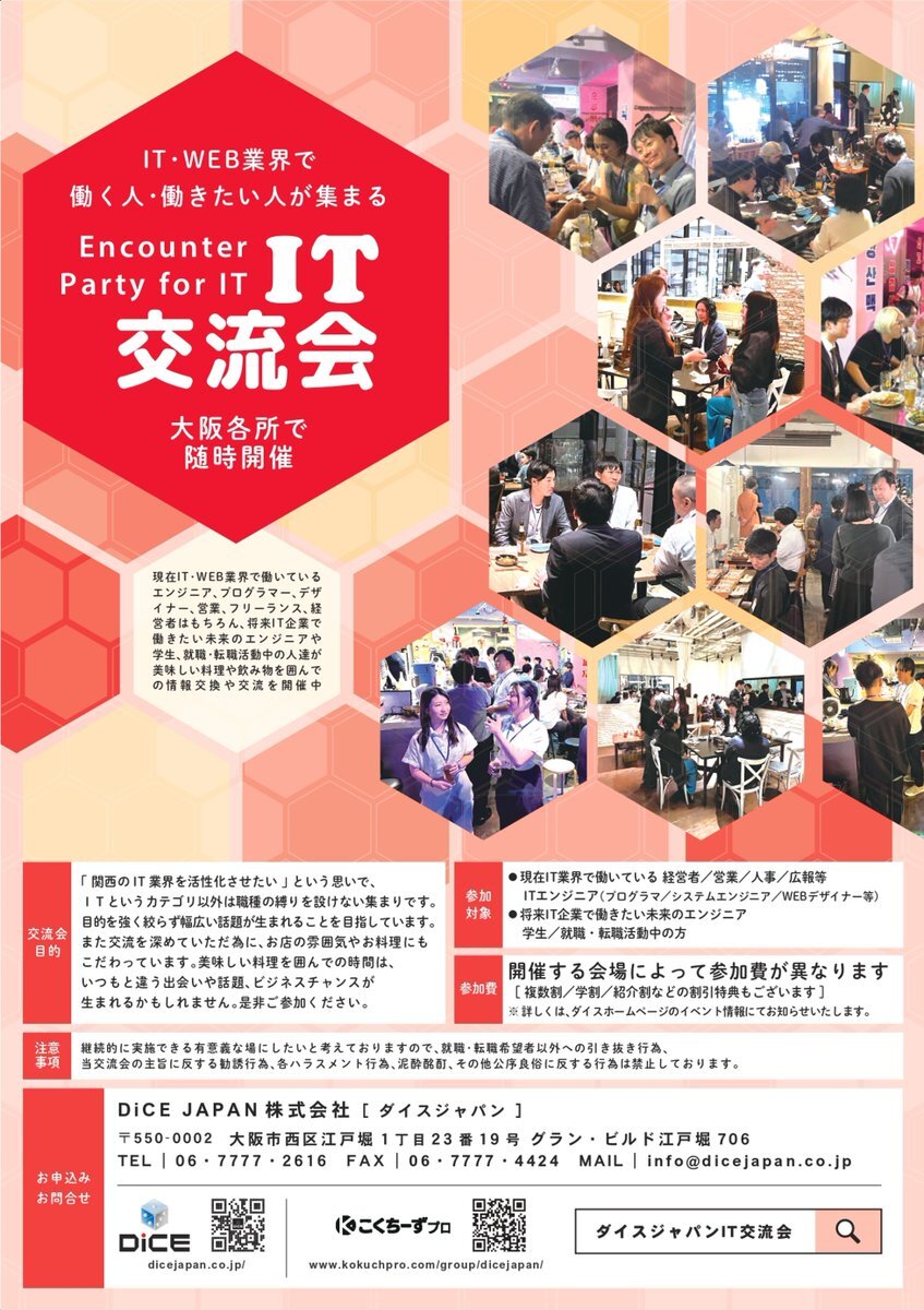 今週金曜の #IT交流会 残り❻名になりました🌟 #プログラマ #システムエンジニア #デザイナー #IT企業 の経営者 #就活生 #転職活動中 の方も歓迎♪ ITやWebに興味があれば参加OK✨ 美味しい料理と気軽な交流を楽しみましょう🍽️ 「DiCE 交流会」で検索🔎 #大阪 #異業種交流会 #エンジニアと繋がりたい pic.x.com/QUPdWt0AN2