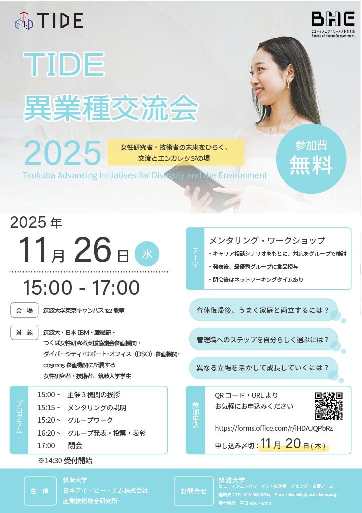 \ #異業種交流会 開催✨ / #TIDE 異業種交流会は、女性研究者・技術者の未来をひらく、交流とエンカレッジの場です! 今回はメンタリング・ワークショップを行います。 ◆2025年11月26日(金)15:00-17:00 ◆筑波大学東京キャンパス ぜひお気軽にご参加ください🙌 pic.x.com/3FLnch6xzG