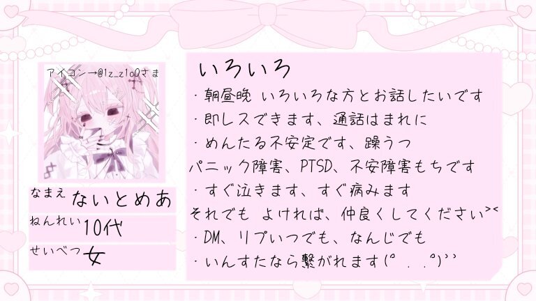 🏷𓂃𓈒𓏸︎︎︎︎ 06 / ♀ / 愛知 / 彼氏有 お友達欲しいです ♡ or ↪︎ で気になりさんお迎え #病み垢 #病み垢女子 #病み垢さんと友達になりたい #病み垢女子と繫がりたい #病み垢さんと絡みたい #病み垢さんと仲良くしたい pic.x.com/RLl1VrWFcQ