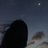 月撮ってたら鳥の群れが通った! 拡大して見たらサギっぽい!!