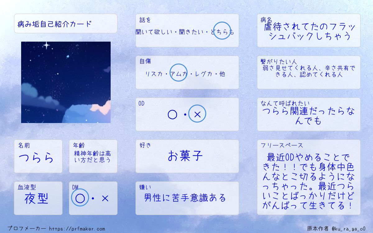03|男|トラウマ持ち|少数派 いっぱいリプするのでいっぱいお話して欲しい|´-`)チラッ フォローしてくれると助かります! #病み垢さんと繋がりたい #病み垢男子さんと繋がりたい #病み垢女子さんと繋がりたい #病み垢さんとお友達になりたい #病み垢さんフォロバ #通話相手募集中