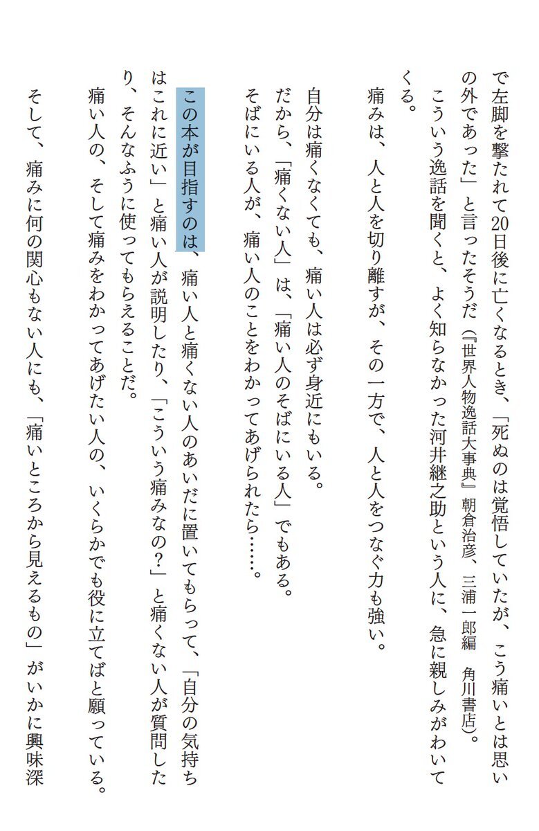 新刊が出ます! 『痛いところから見えるもの』文藝春秋 ・痛みのある人 ・痛みのある人のそばにいる人 にはぜひ読んでみていただきたいです! 痛い人と痛くない人が、この本をあいだに置くことで、少しでもわかりあえたらと願っています🙏 #痛いところから見えるもの amzn.to/3J6A3hB pic.x.com/1oyUCDlZDU