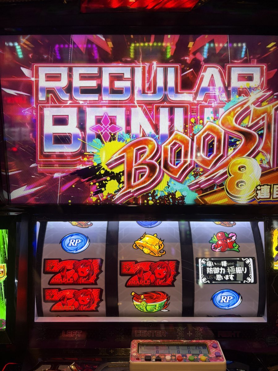 #痛いのは嫌なので防御力に極振りしたいと思います 10/22は防振りのメイプルが誕生日!んじゃ初打ちも兼ねて打ってきました🫡 すぐにわかりました。この台は…そう「秘宝伝」😅 別に嫌いではないですけど高確率ゾーンは苦手🤮 設定は5枚役カチカチ数えまして高設定の数値。ええ負けましたね😭むりぽ pic.x.com/AP6VI9zlRY