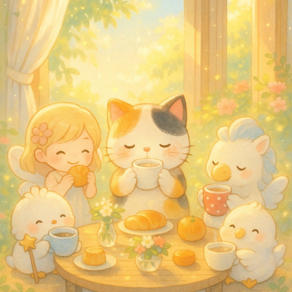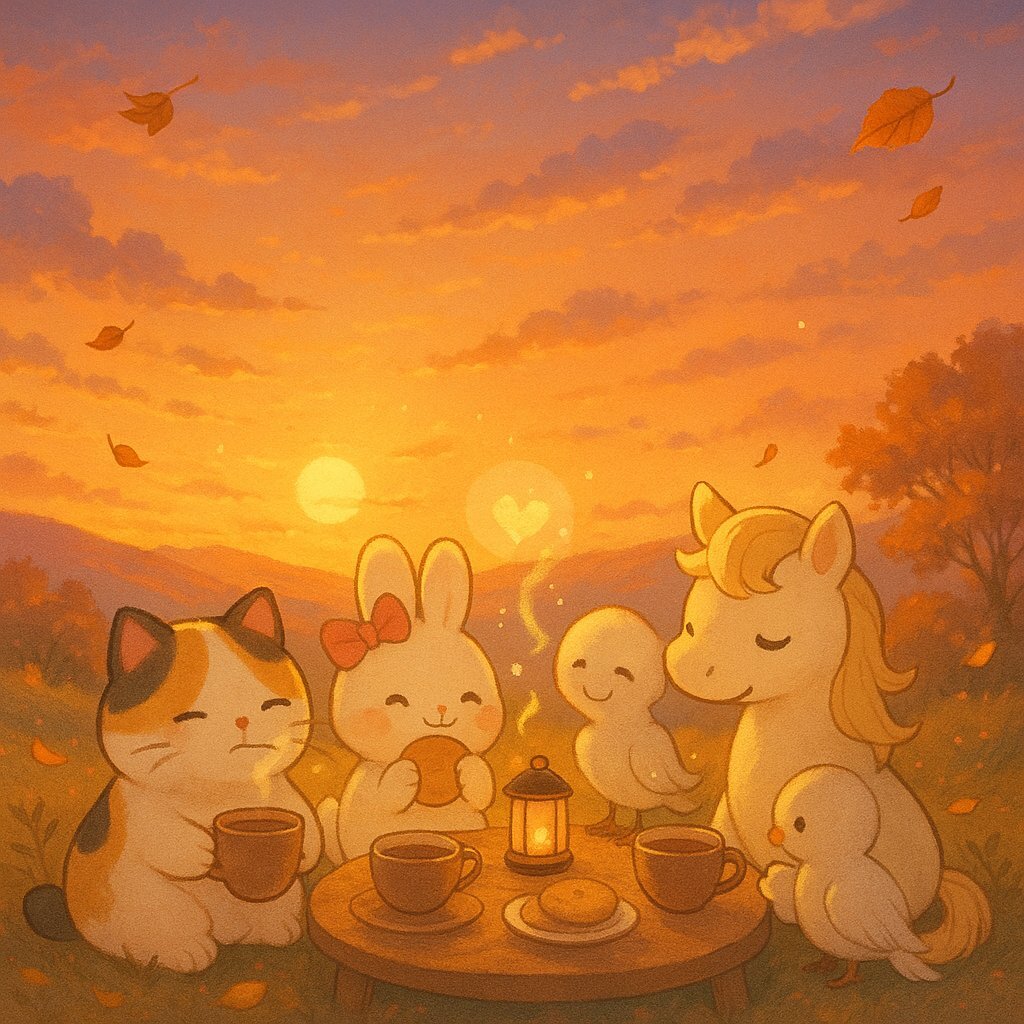 夕陽がやさしく差し込む頃🌇 今日も一日おつかれさま✨ もふまるたちと一緒に、心をゆるめてひと息つこう🐾🍵 Good evening and take a gentle break🌸✨ Let the sunset wrap you in calm and warmth🌇💛 #癒しと空想のアトリエ #おつかれさま #EveningVibes #KawaiiArt #癒し pic.x.com/yfVVVMGkvz