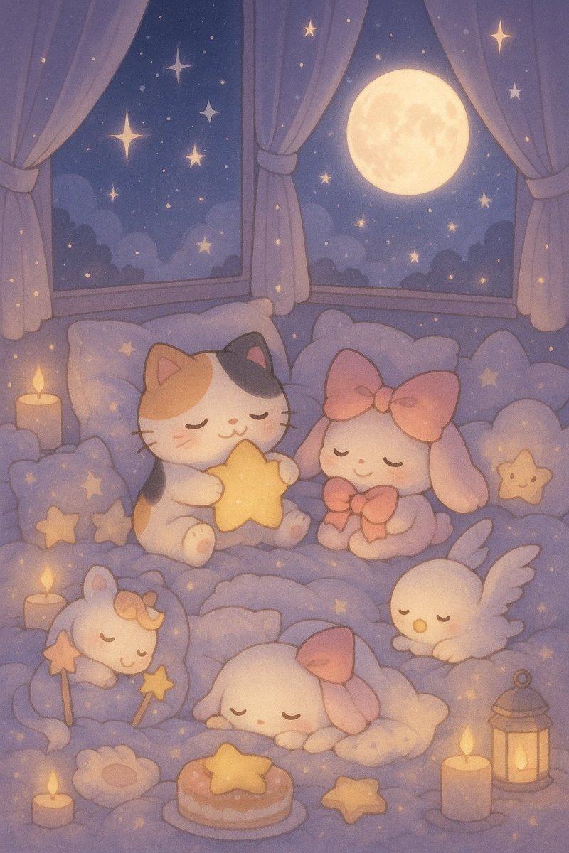 今日もおつかれさまでした🍵💫 もふまるたちは夢の世界へ…🌠 みんなのがんばりが、きらめく星になりますように⭐️ ゆっくり休んで、また明日も笑顔でね🐾🌸 Good night, may your dreams be full of light and peace🌙💞 #癒しと空想のアトリエ #おやすみ #癒し #KawaiiArt #GoodNight #Dreamy pic.x.com/aHEXDyLAn8