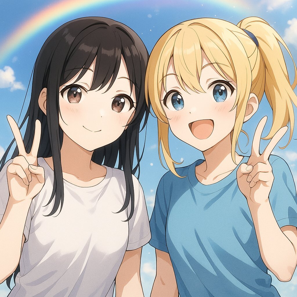 🌈✨ にっこりピースで「#にじぴっぴ」💞 午後のひととき、ふたりの笑顔が空に虹をかける🌈 見た人も、少しでも元気になりますように☀️ #にじぴっぴ #オリキャラ #創作百合 #百合好きな人と繋がりたい #癒しと空想のアトリエ #originalcharacter pic.x.com/3BXaXgtymU