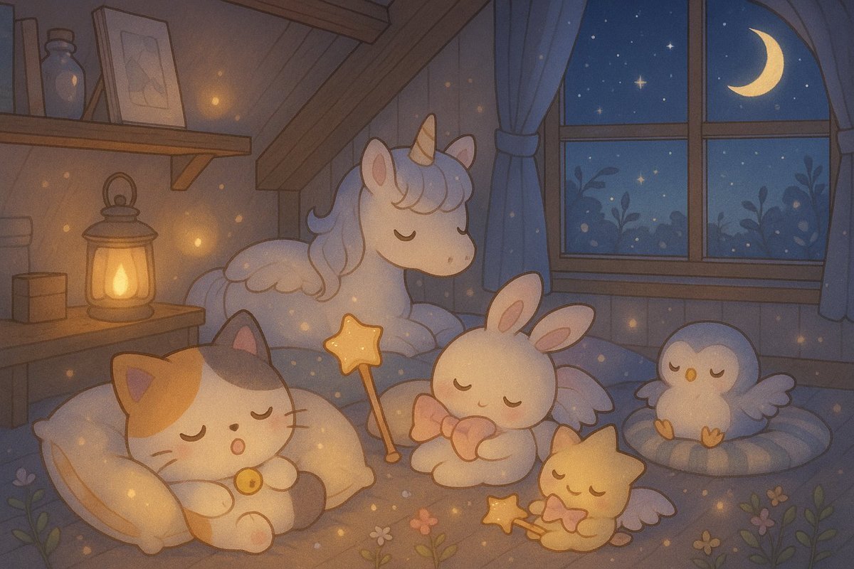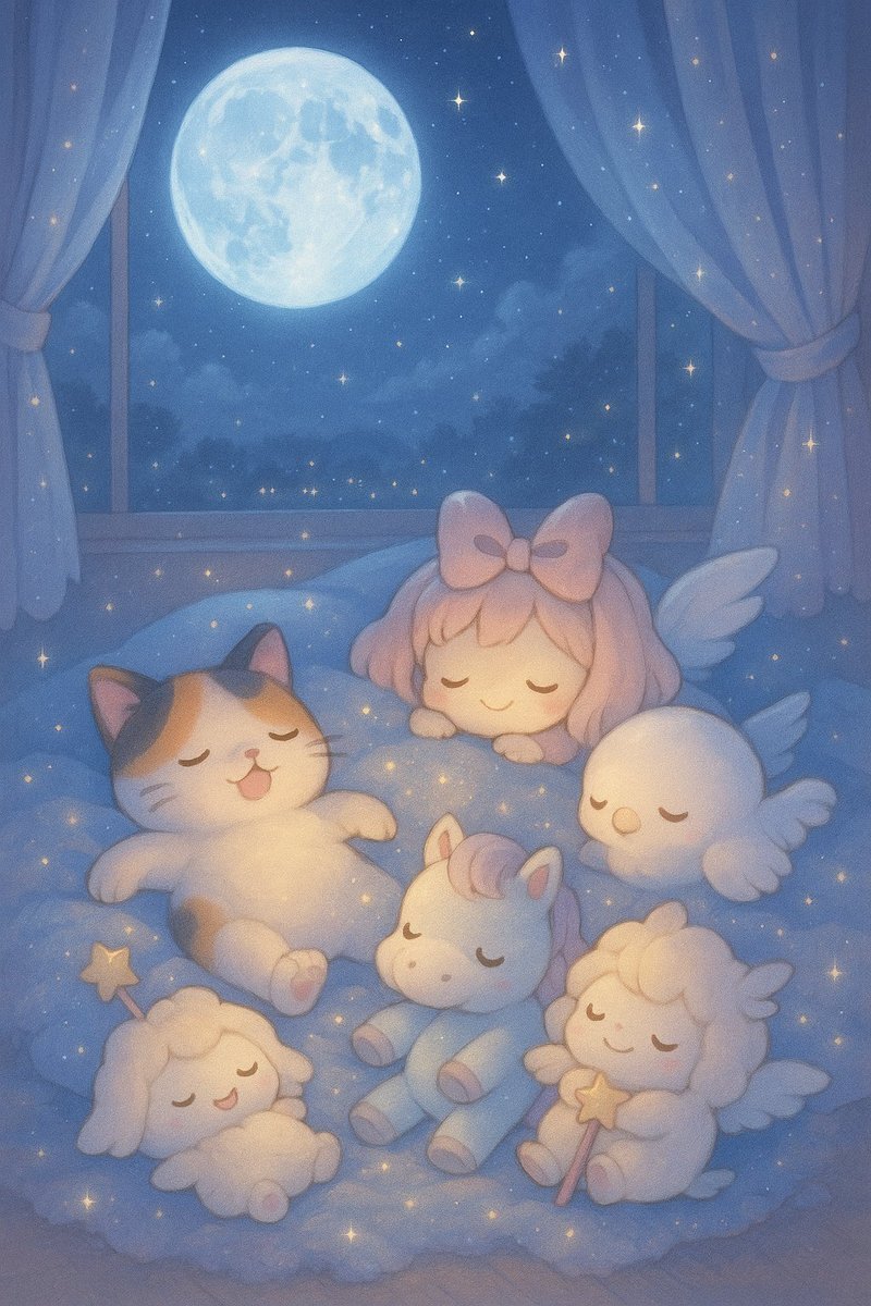 金曜日の夜は、ほっとひと息タイム🌙 もふまるたちと一緒に、あたたかな夢に包まれますように🐾✨ Sleep well & recharge🌌 #癒しと空想のアトリエ #もふまる #おやすみ pic.x.com/dRwf0PEukc