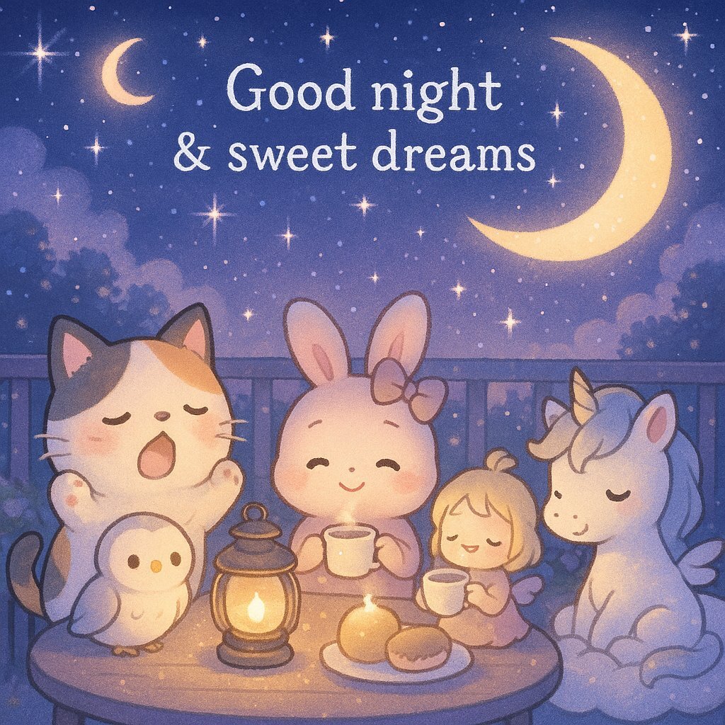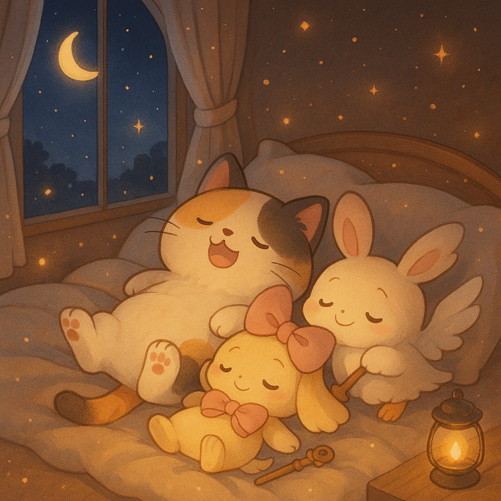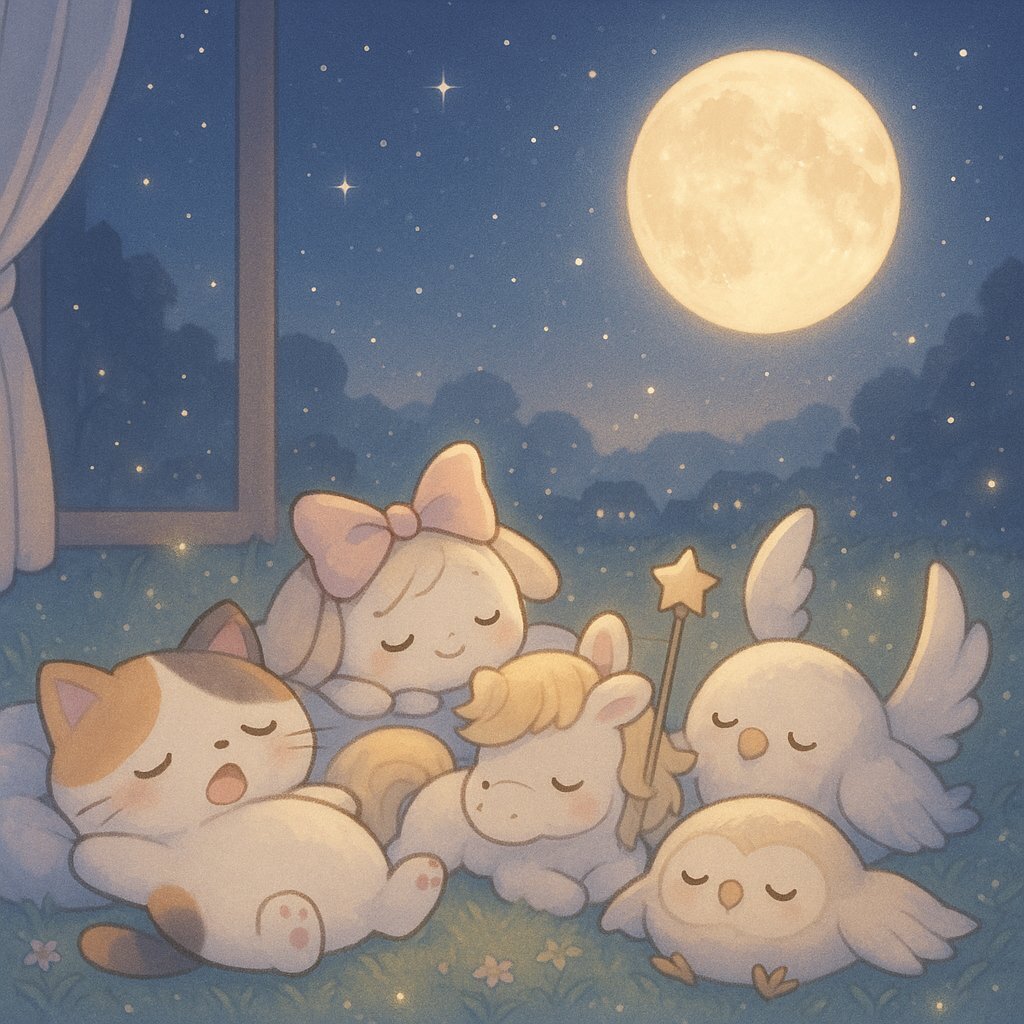 今夜も一日おつかれさま🍵 中秋の名月のあとの夜は、まだ少し月が明るいね🌙 もふまるたちも月明かりの下で、すやすや夢の中🐾💤 みんなもゆっくり休んでね🍀 Good night & sweet dreams🌌 #癒しと空想のアトリエ #おやすみ #GoodNight #KawaiiArt pic.x.com/HGH3nKPUSI