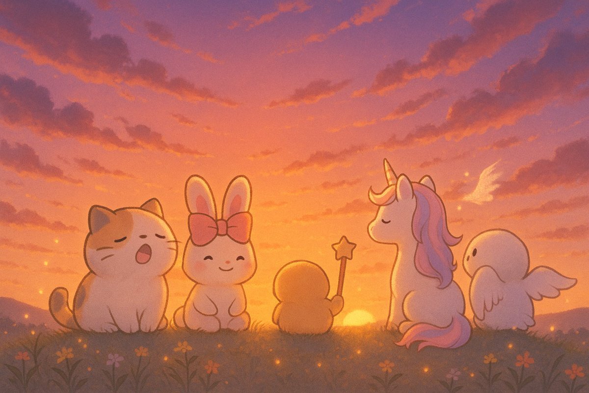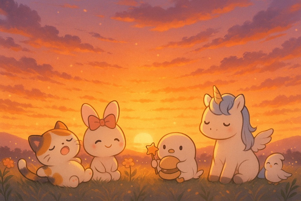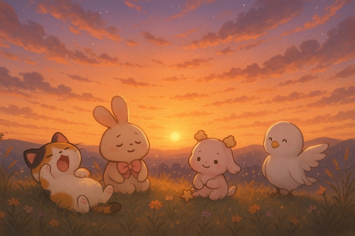 1週間おつかれさま🌸 夕焼けに包まれて、もふまるたちもほっと一息🐾✨ ゆっくり空を見上げて、「今日もいい日だったなぁ」って微笑んでる☺️ Good evening & happy Friday💫 Let’s wind down with gentle smiles🌆 #癒しと空想のアトリエ #癒し #金曜日 #GoodEvening #KawaiiArt pic.x.com/zk8OHoVSDW