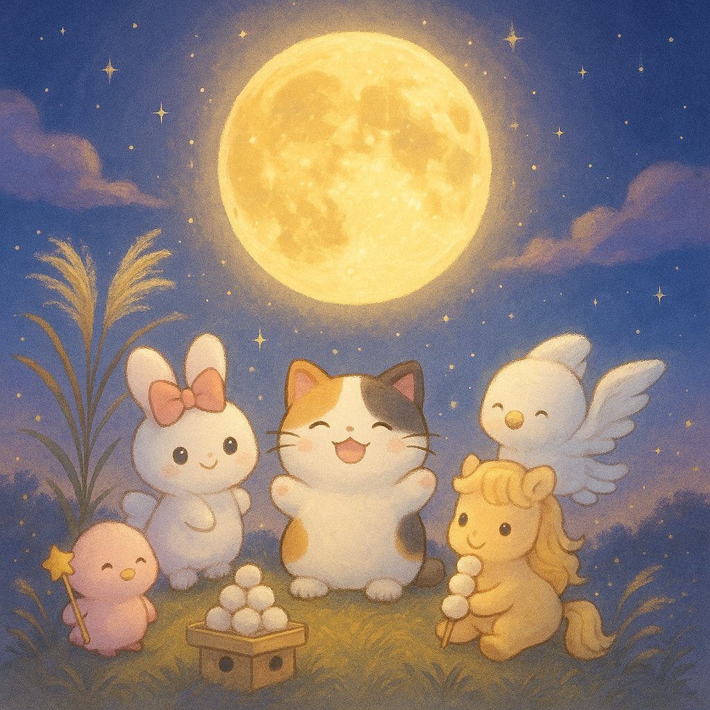 🩵秋の夜に、まんまるのお月さま🌕 みんなで空を見上げて、今日もおつかれさま。 やさしい光が、心まで照らしてくれますように🍃 Good evening and happy Moon Viewing Night🌙✨ #癒しと空想のアトリエ #中秋の名月 #KawaiiArt pic.x.com/5Xmc5Er7Zw