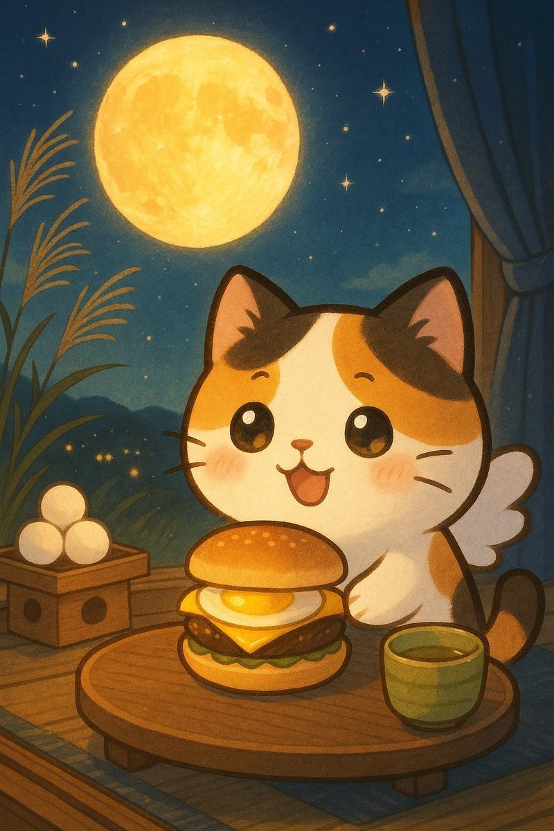 「お月見もいいけど……ぼくは“月見バーガー見”もするもふ🍔🌕✨」 まんまるなお月さまと、まんまるたまご。 どっちもおいしそうもふ~🍳💛 #もふまる #お月見 #月見バーガー #癒しと空想のアトリエ pic.x.com/frJGbZY6gY