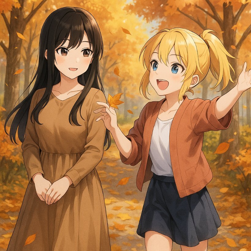 落ち葉が色づき始めた並木道🍂 ひらひら落ち葉を追いかける空良ちゃんと、 そんな姿を見て笑顔になる花音ちゃん。 小さなカフェでかぼちゃスイーツをシェアして、 「秋ってあったかいね」って二人で微笑む──。 #癒しと空想のアトリエ #花音と空良 #百合 pic.x.com/y27tvCN8hE
