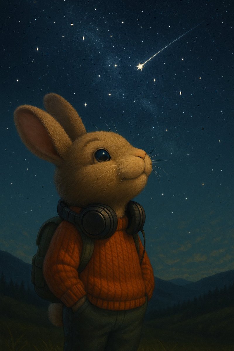 静かな星空タイム。 今日もがんばりすぎず、でもサボらない。 小さな光を見上げて、モフっとひと息🐰🎧✨ #モフオ日記 #モフっと生きる #モフオの夜 #癒しモフ #星空の時間 #うさぎのいる暮らし #うさぎ #うさぎ好きさんと繋がりたい pic.x.com/6WLOiPyBeH