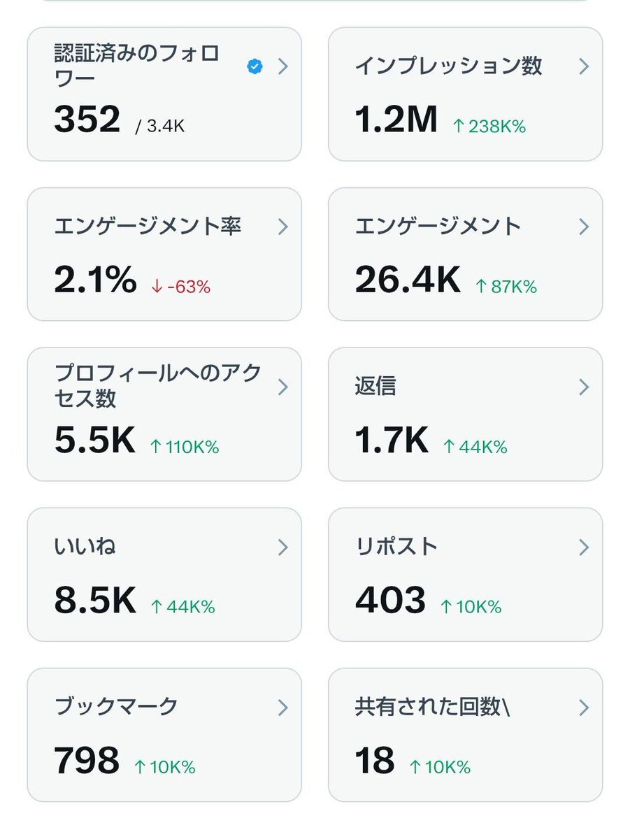 X伸びないって、もがいてる全ての人はこれ見て。 大丈夫。俺も、全く同じこと思ってた。 「何しても伸びない」「誰も見てない」 本気で、諦めかけてた。 でも今、 インプ19→インプ51万。 いいね0→いいね1300。 たった2週間、本気で運用しただけで、インプの数字が"23万倍"に跳ね上がった。