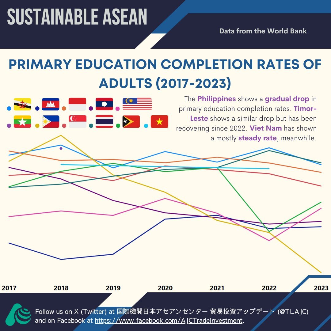 ASEANの教育状況は加盟国によって異なります🏫🧑‍🎓👩‍🎓@worldbankdataのデータから、最新のメンバーである東ティモールも含め、ASEANの教育状況のグラフを見てみましょう!📊📈 #アセアン #教育 #データ #持続可能 #持続可能性 #成長 #発展 #データ可視化 #サスティナブル #サステナビリティ pic.x.com/zmhN4iqhxF