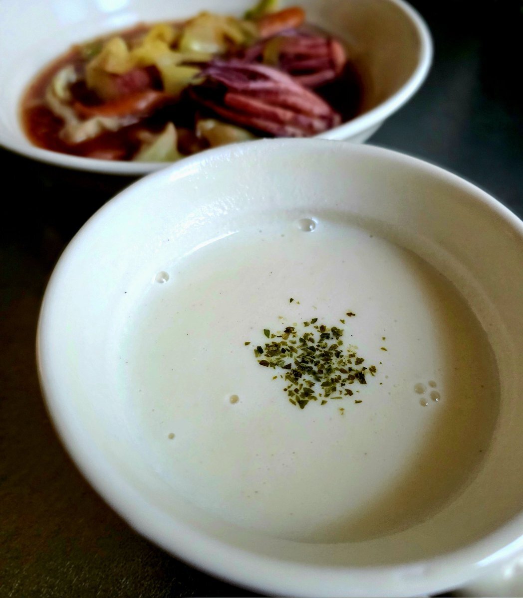 秋から冬へ移る頃。 この時期は【肺】と【腎】が入れ替わる季節。 潤いを補う大根のポタージュ、 腎を養うイカとキャベツのやわらか煮。 静かに整える一皿が巡りを戻す。 #冬の養生 #食で整える #登別の暮らし pic.x.com/2UWhB2L8Ik