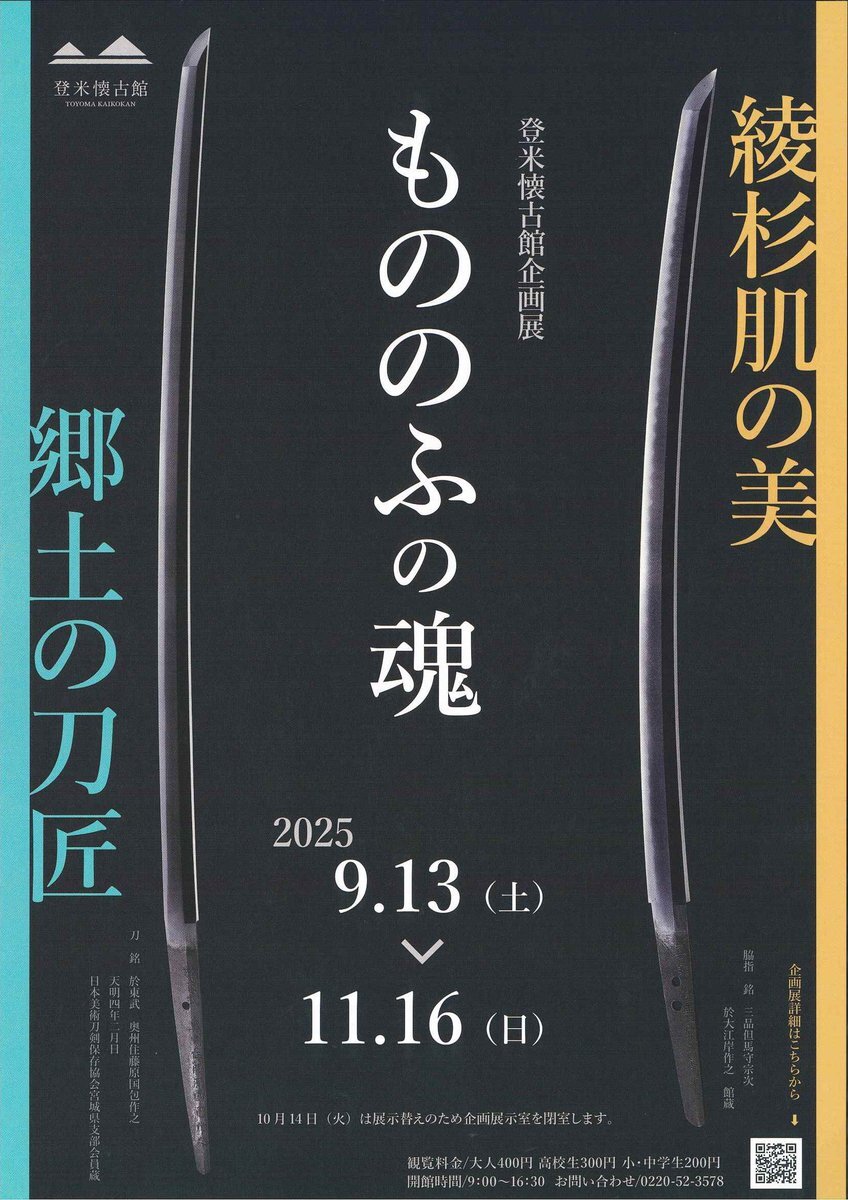 📢登米懐古館企画展のお知らせ📢 2025年9/13~11/16まで #登米懐古館 にて企画展「もののふの魂」を開催いたします。 #登米市 #みやぎの明治村 #刀剣 pic.x.com/mYxFTsHdGB