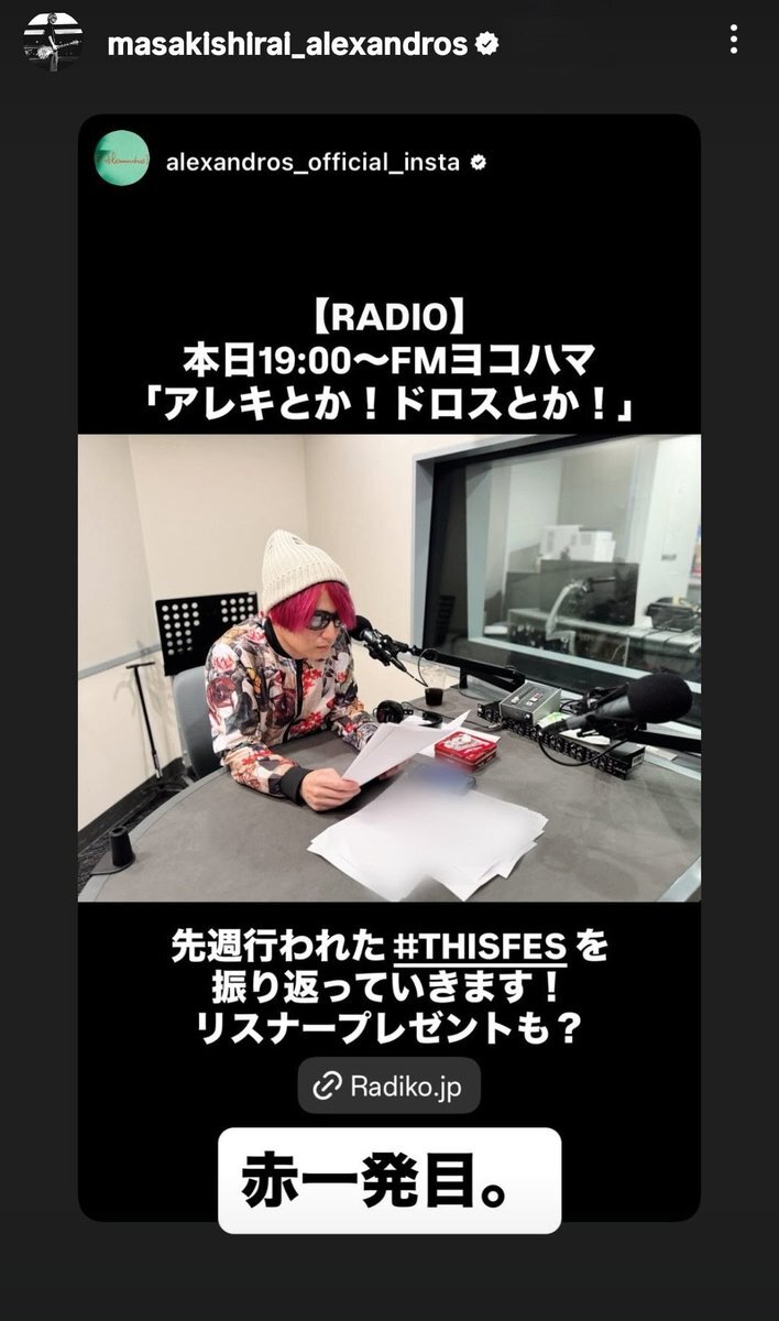 アレキとか!ドロスとか! FMヨコハマ 2025/11/9(日) 19:00-19:30 radiko.jp/share/?t=20251… #radiko #シェアラジコ #[Alexandros] #白井眞輝