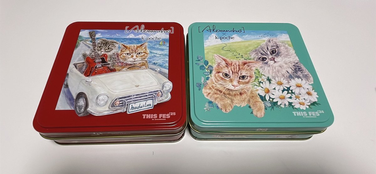 🍪#THISFES MERCH🍪 「#白井眞輝 監修 [Alexandros]×K-poche クッキー缶(2025)」 official-goods-store.jp/alexandros/v2/… 昨年に引き続き、K-pocheオーナー・山田さんと試行錯誤を重ね ふたを開けた瞬間に心がときめくような 夢いっぱいのクッキーを詰めていただきました🐈🐈‍⬛ 数量限定、グッズブースにて販売。 pic.x.com/FuHLzSNI1M