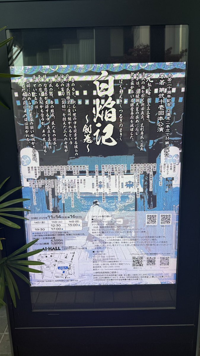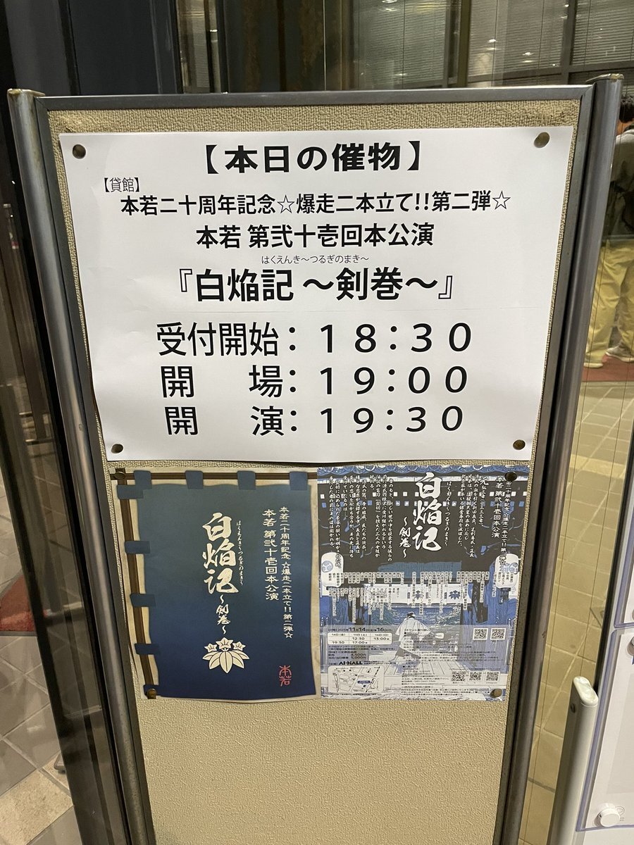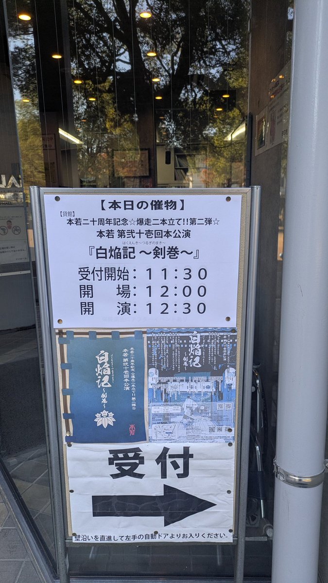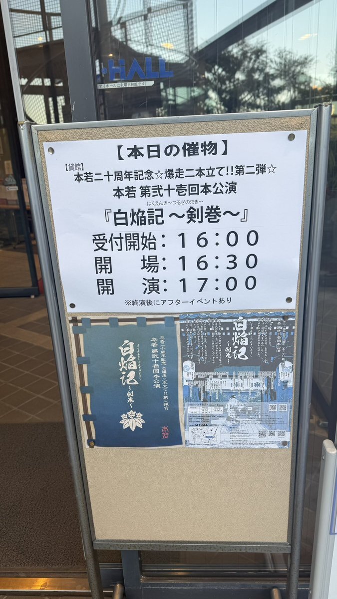 さぁ、『#白焔記 ~剣巻~」 2日目です! 2公演! 11月 15日(土)12:30/17:00☆ ☆17:00からは、アフターイベント お席まだご用意できます!! お待ちしています! 【料金】 ※全席自由席 前売 4500円 当日/当日精算 5000円 【会場】 AI・HALL pic.x.com/pxbGuFQ9gI