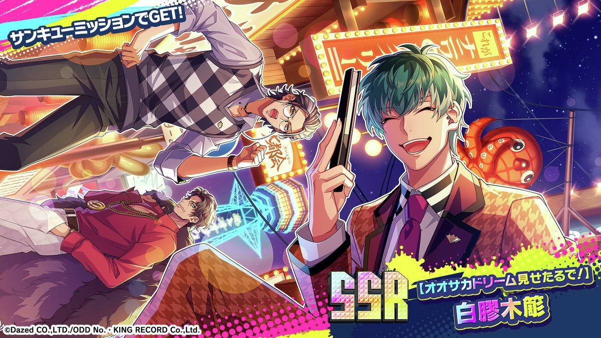 ┈┈┈🎵 サンキューミッション開催中 🎤┈┈┈ 各ディビジョンの楽曲をモチーフとしたSSRメモリーカードや覚醒素材がもらえる ミッションイベントを開催中! 今回は #どついたれ本舗 を率いる #白膠木簓 のメモリーカードをご紹介! 詳細は #ヒプドリ アプリ内にてご確認ください pic.x.com/NV0uz2BXqR