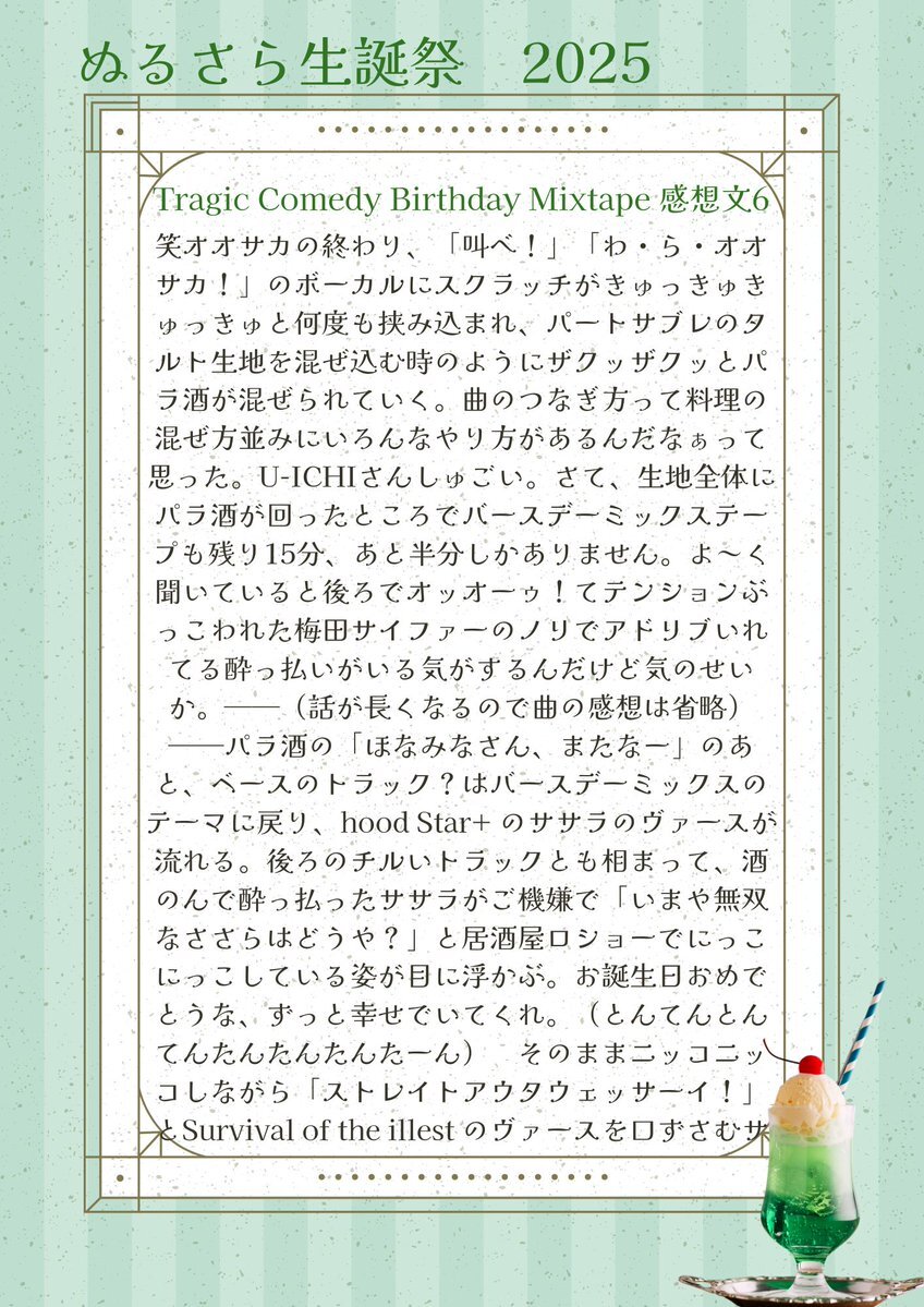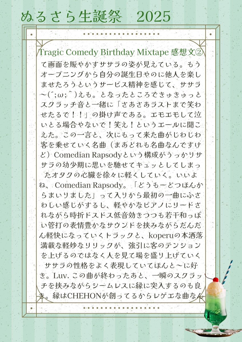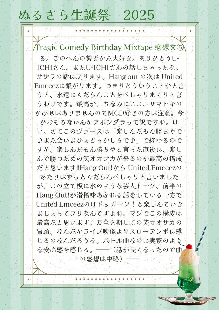 ササラさんお誕生日おめでとう!を記念して書いたBirthdaymixtape感想文(2/3) 5枚目から8枚目です。音楽を知らないお宅の怪文書。 遅刻したけど愛はあるよ。 #白膠木簓生誕祭2025 pic.x.com/IbDKTvGEDk