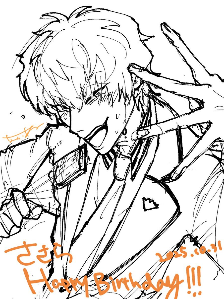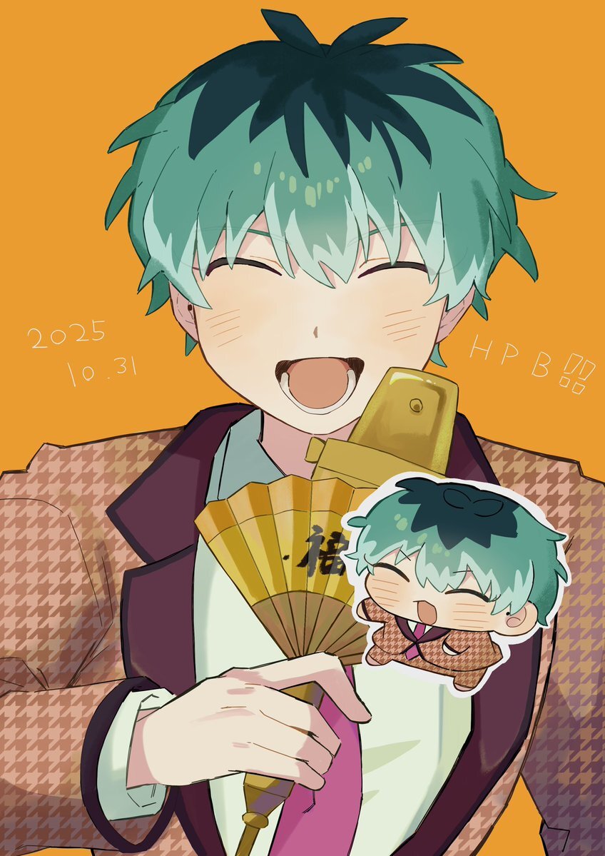 お誕生日おめでとう🧡✨🪭 普通に遅刻だし激荒線画で泣きそうだけどとりあえずできて良かった、、 (絵柄が安定する薬を誰か下さい😭) #白膠木簓誕生祭2025 #白膠木簓生誕祭2025