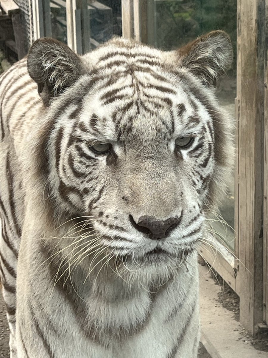 #ホワイトタイガー:ここのコ、縞模様が茶色っぽいのよね こういうパンあったよなあ…と思って腹減った記憶 2025.10.29 #伊豆アニマルキングダム #アニキン #静岡県 #東伊豆町 #動物園 #ベンガルトラ #トラ #白虎 #もっちりチョコパン pic.x.com/ChlVId5vgb