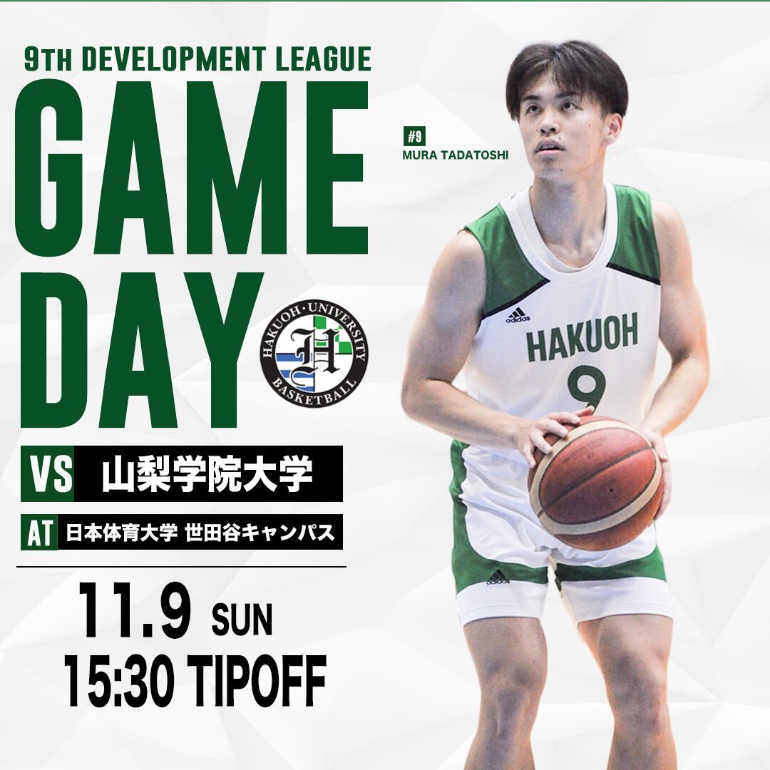 𝐆𝐀𝐌𝐄 𝐃𝐀𝐘 (Bチーム) #第9回developmentleague 🗓️11月9日(日) 15:30TIP OFF 🆚山梨学院大学 🏟️日本体育大学 世田谷キャンパス #白鴎大学 #hakuohsoldiers #大学バスケ pic.x.com/pp7DryjLxn