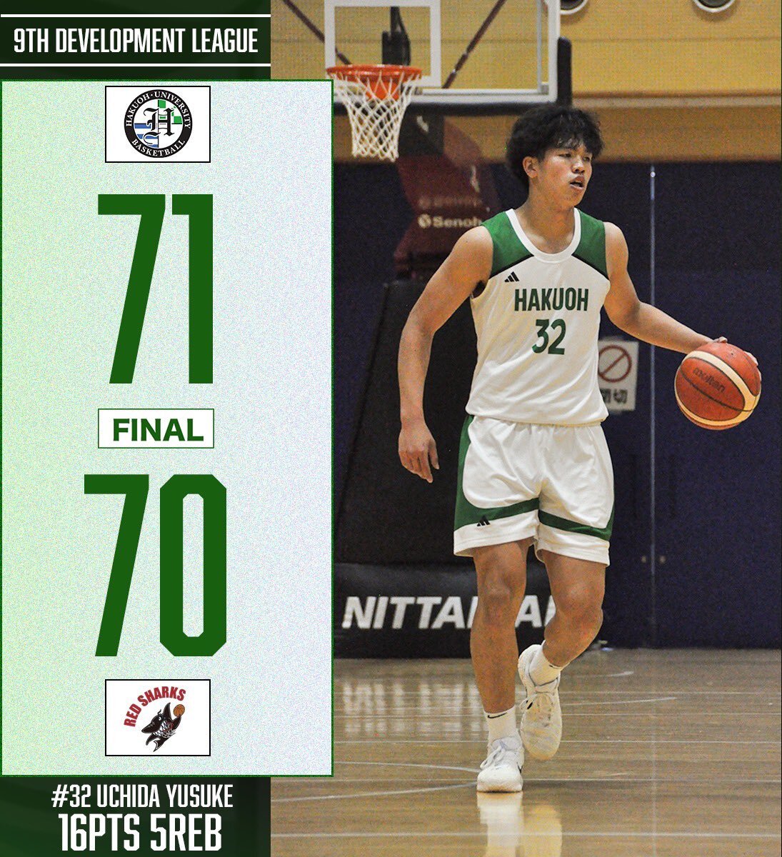 𝐆𝐀𝐌𝐄 𝐑𝐄𝐒𝐔𝐋𝐓 (Bチーム) #第9回developmentleague 白鷗 71 - 70 日本A #白鴎大学 #hakuohsoldiers #大学バスケ pic.x.com/DpweyLCHkr