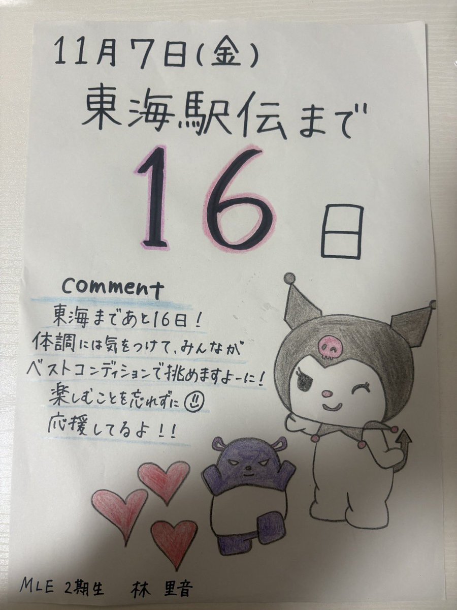 #東海駅伝まで あと16日🗓️ 📣2期生 林里音(1•白鴎大) 東海駅伝まであと16日です! 当日、全員がベストな状態で挑めるように体調管理や日常生活には気をつけて行きましょう✊🏼 みんなのこと応援してるよ❤️❤️ #白鴎大学 #里音も頑張れ🌻 pic.x.com/ZzCaccqSfT
