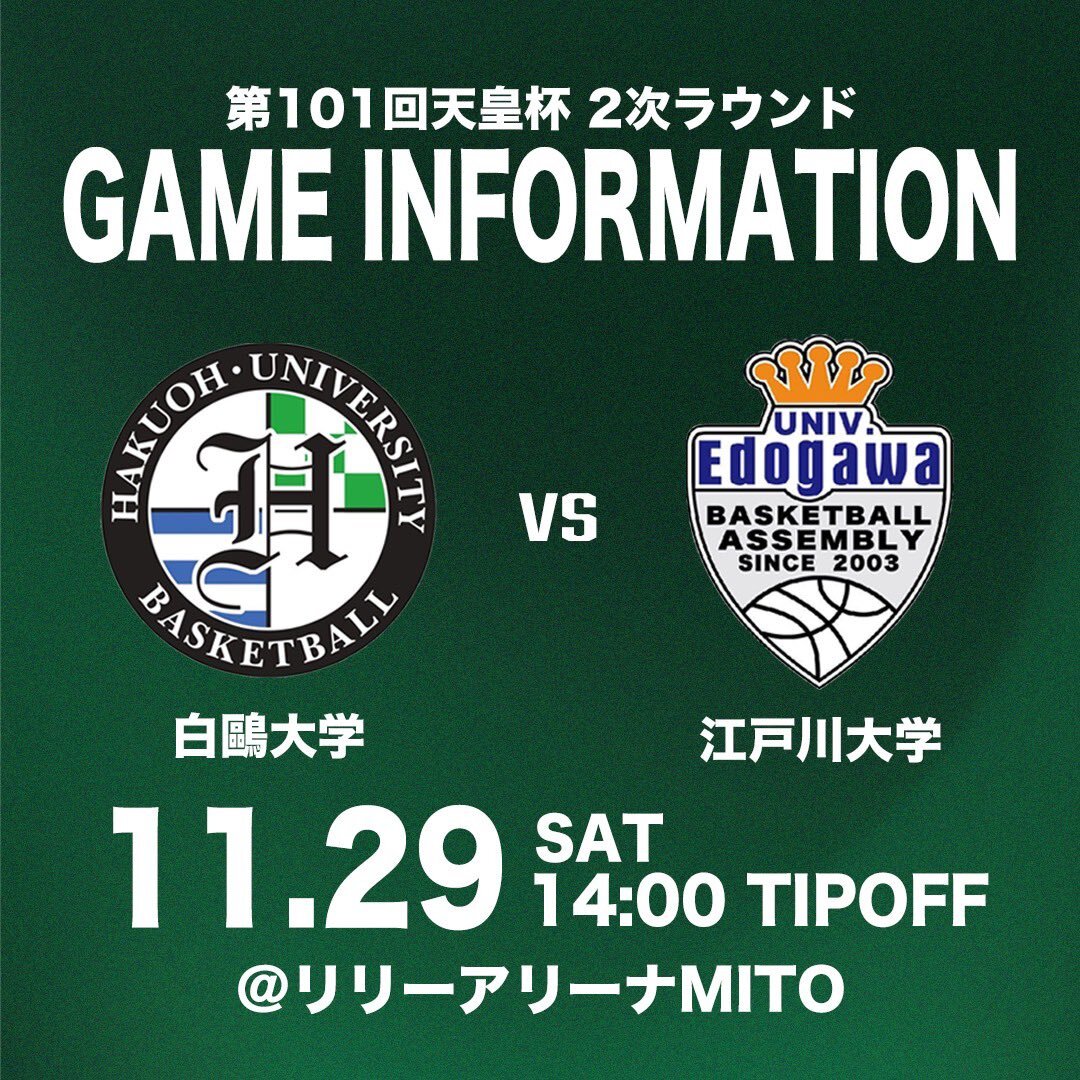 𝐆𝐀𝐌𝐄 𝐃𝐀𝐘 #第101回天皇杯 (2次ラウンド) 🗓️11月29日(土) 14:00TIP OFF 🆚江戸川大学 🏟️リリーアリーナMITO #白鴎大学 #hakuohsoldiers #大学バスケ pic.x.com/Jki7e6vhs5