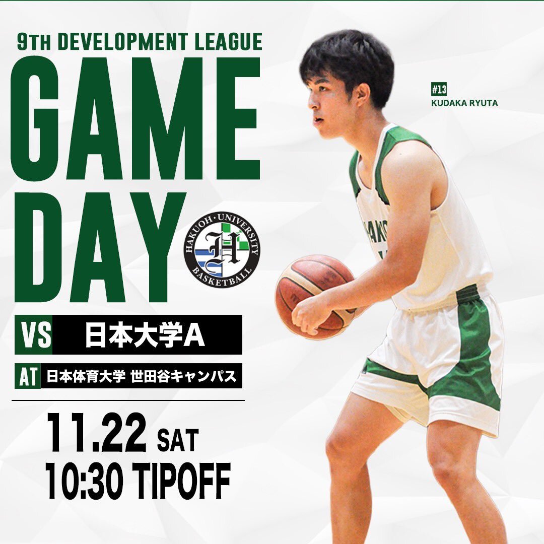𝐆𝐀𝐌𝐄 𝐃𝐀𝐘 (Bチーム) #第9回developmentleague 🗓️11月22日(土) 10:30TIP OFF 🆚日本大学 🏟️日本体育大学 世田谷キャンパス #白鴎大学 #hakuohsoldiers #大学バスケ pic.x.com/QwSnB43HD3