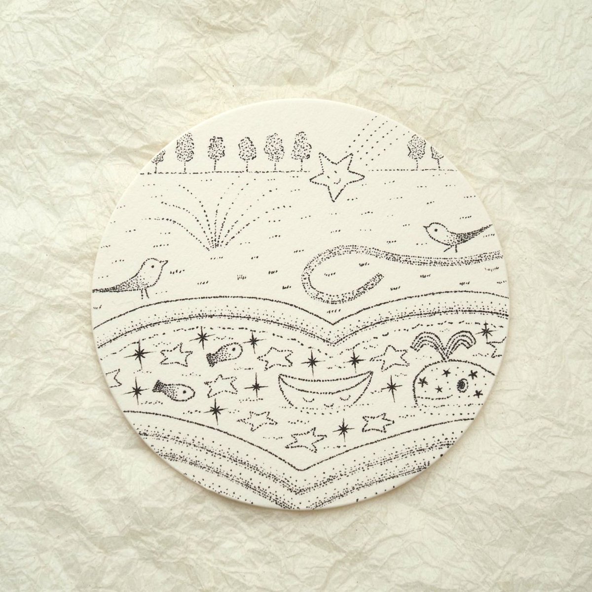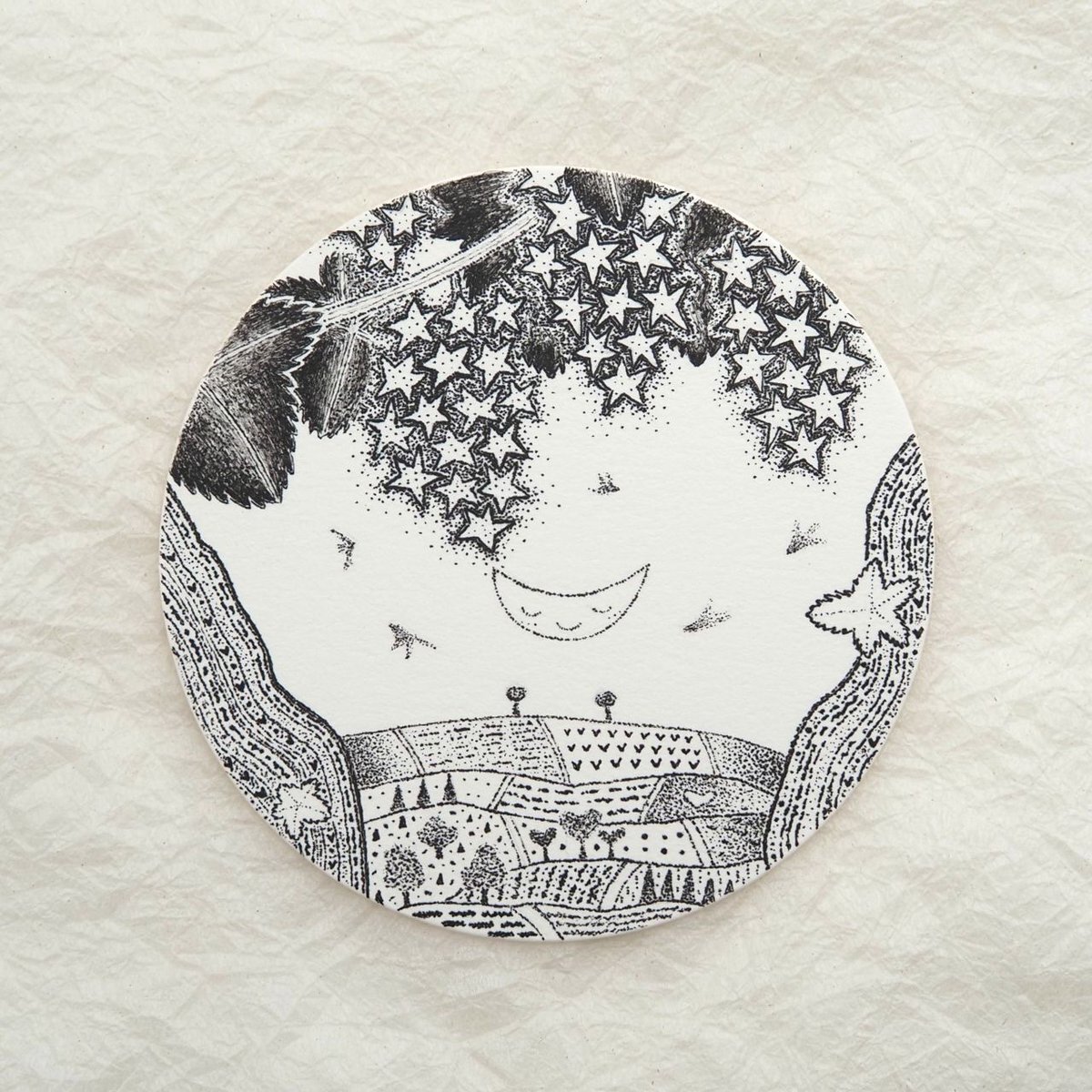 🌟 #白黒ええよん 個展スタート🌟 作品に広がるあたたかな物語。コースターサイズの紙に描かれた小さな愛と希望の世界🌙 静かな光の粒と点が優しく語りかけます。 ぜひ会場でお楽しみ下さい。 作家在廊|11/24(月・祝) 詳細|picaresquejpn.com/4696a4_exhibit… 作家X @4696a4 #優しい世界 #絵画 #個展