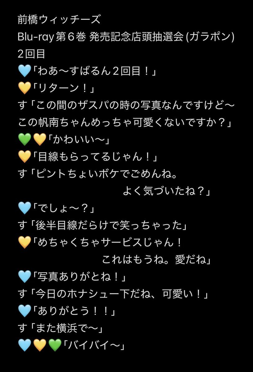 前橋ウィッチーズ Blu-ray第6巻発売記念 店頭抽選会(ガラポン) #百瀬帆南 さん #三波春香 さん #本村玲奈 さん レポ 2回目はA・B賞が無くなって、C賞のブロマイドお渡し会でした 3人ともエプロン姿可愛かったです お見せした写真は引用元ツイ #前橋ウィッチーズ pic.x.com/5uVbCvIh8C x.com/shiraishi_0926…