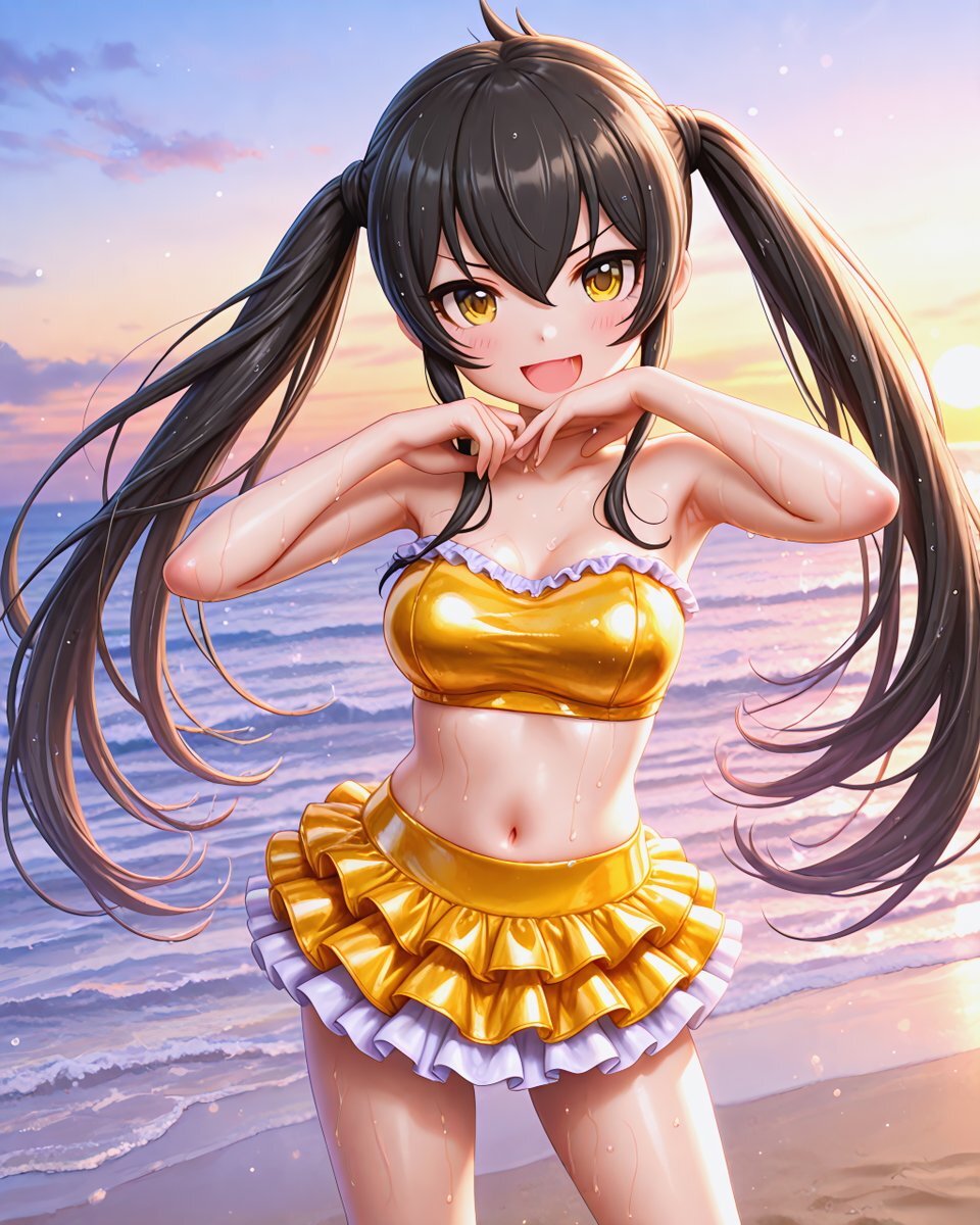 ヴァリサはぴばー!! その3 #AIお絵かき #的場梨沙生誕祭2025 #的場梨沙誕生祭2025 #的場梨沙 水着グラビアです 呪文をそんなに変えてないんだけどポーズが独特になったので即採用 ただ、胸のフリルはもっと大きいのにするつもりだったけどうまくいかなかった…というか盛られてね? pic.x.com/q8aWRCWSPG