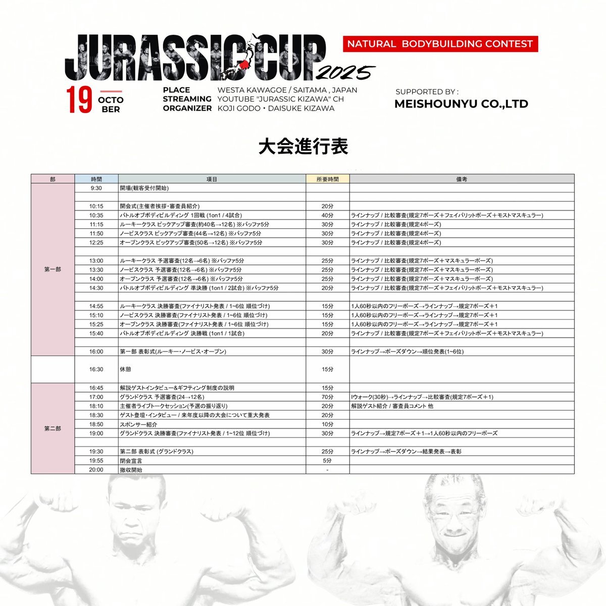 【大会当日のスケジュールについて】 当日の進行表を公開させていただきました。(※選手の皆さんは、大会公式LINEから別送している選手をスケジュールに沿ってお集まりをお願いいたします。) 進行表は、大会公式LINEのリッチメニューからもダウンロードは可能となっております。