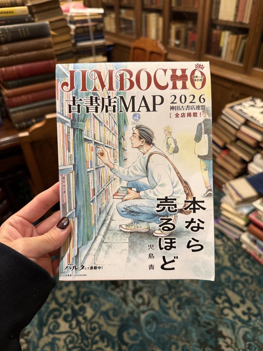 【📚JIMBOCHO古書店MAP 2026が完成しました✨】 今年の表紙イラストは、 『本なら売るほど』(ハルタ連載中)の著者・児島 青さんによる描き下ろしです🎨 各古書店にて無料配布中です🆓 秋の神保町散策のお供にぜひ📚 ※なくなり次第終了