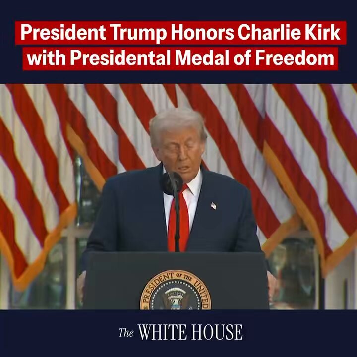 President Donald J. Trump posthumously awards Charlie Kirk the Presidential Medal of Freedom. A true American patriot. 🇺🇸