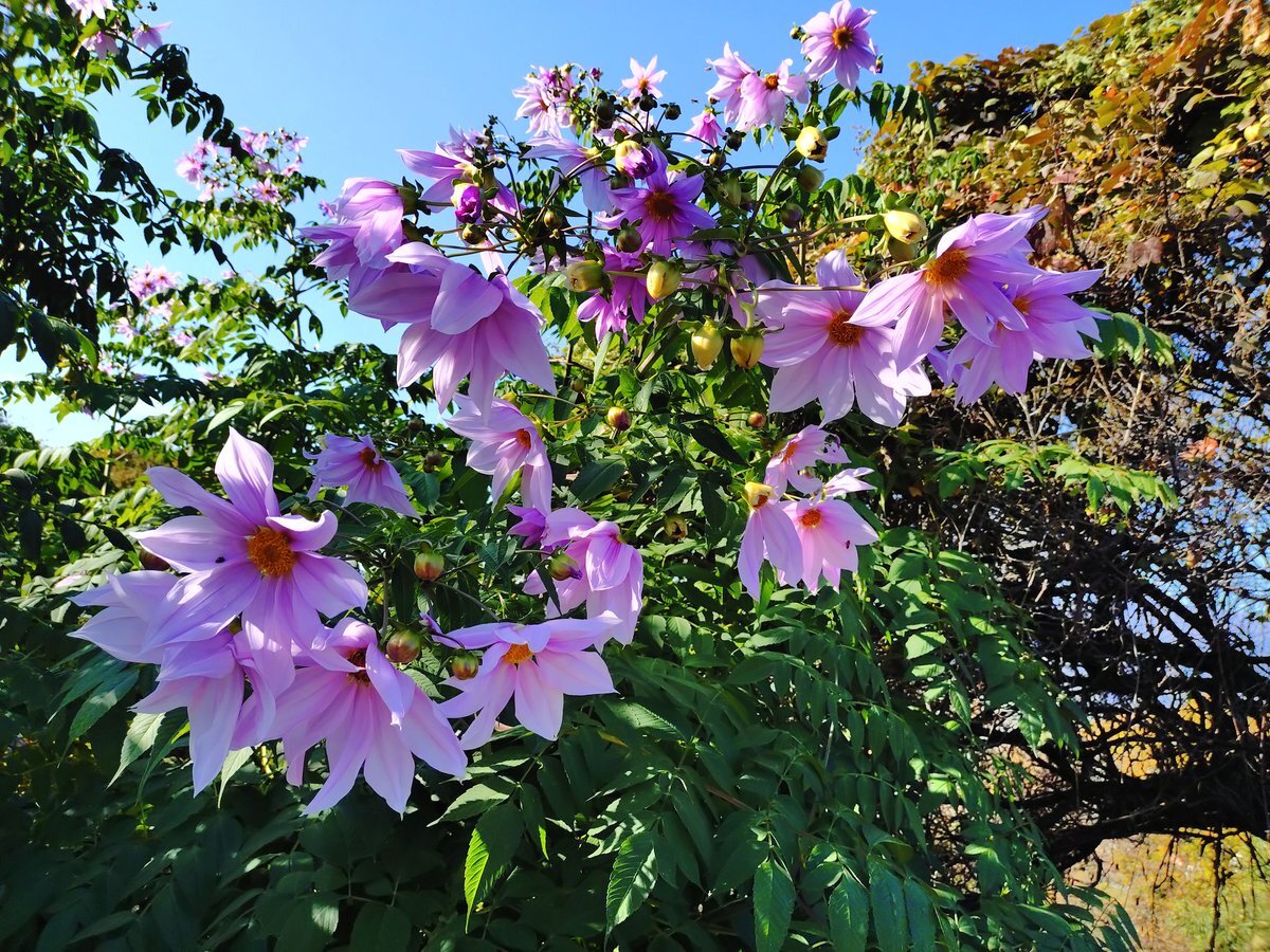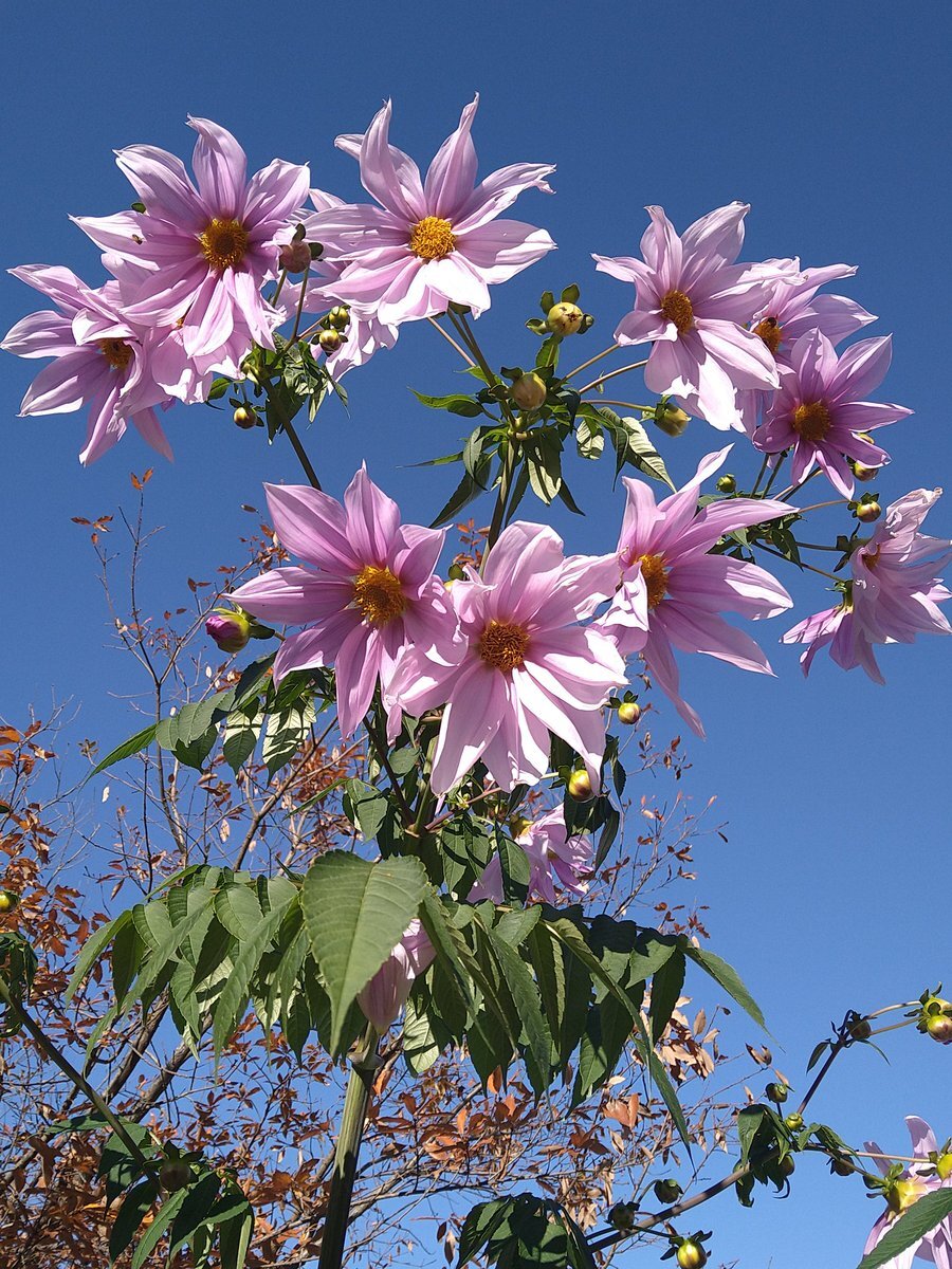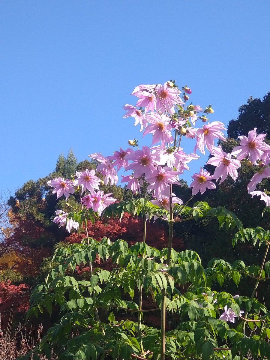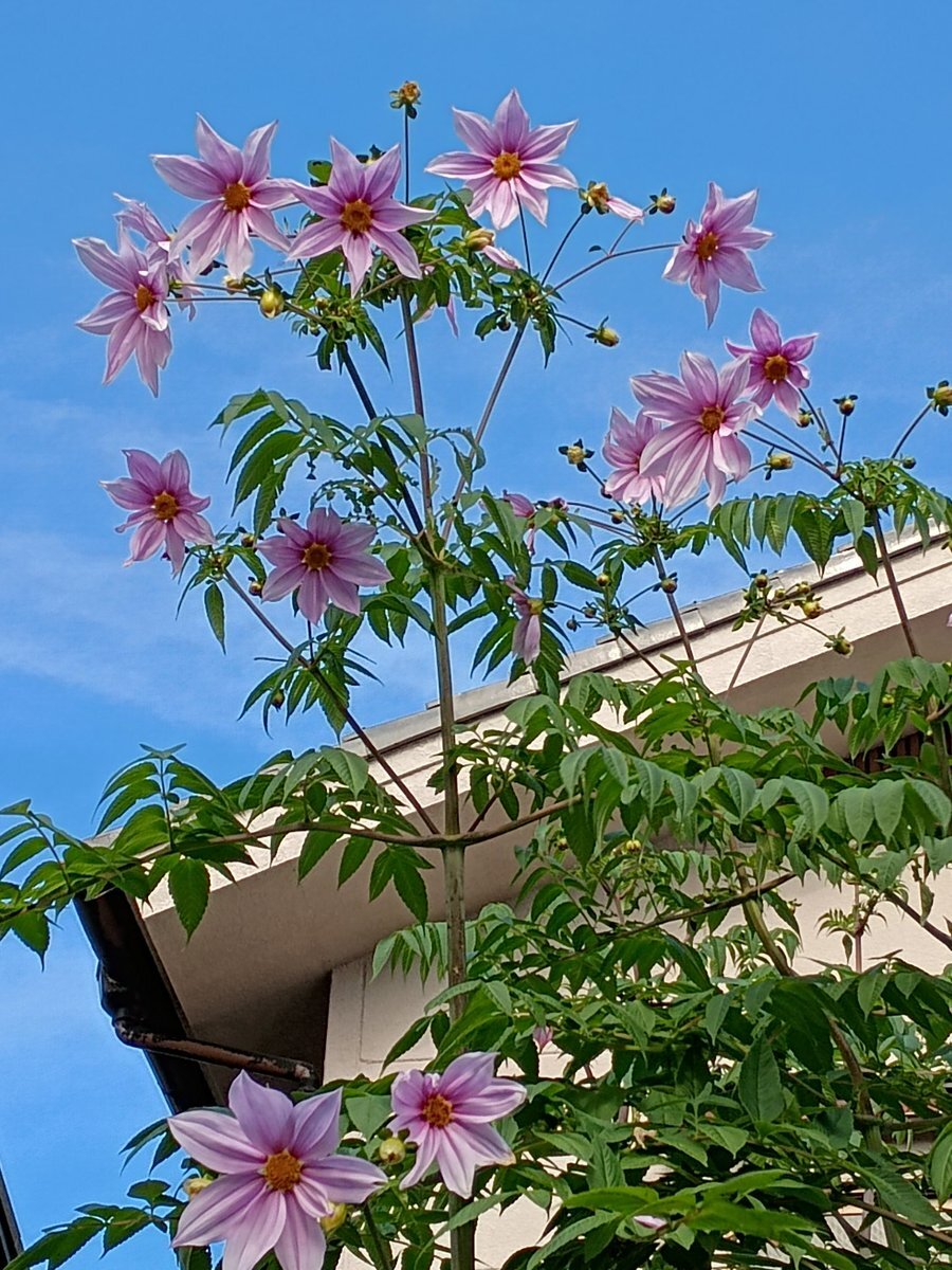 #皇帝ダリア 11〜12月 キダチダリア 日が短くなる晩秋にピンクや紫、白色の花が咲き、八重咲きもあります。 去年は枯れたので、挿し木に挑戦しました。 皇帝ダリアの木をもらい、10〜15cm位カットして、プランターや地植えにしました。 4m以上成長して、庭で皇帝ダリアが綺麗に咲いています。☺ pic.x.com/HjcDHDI4xT