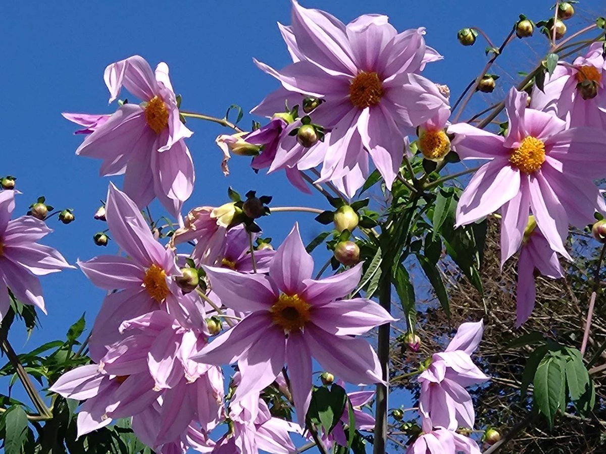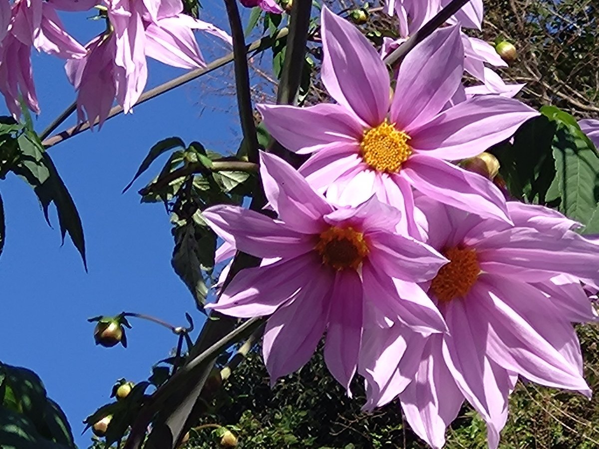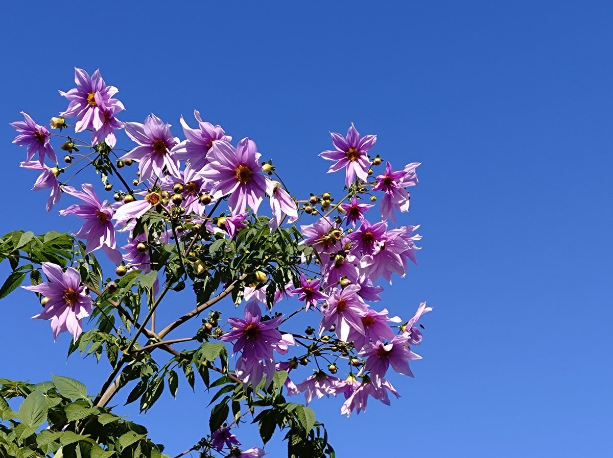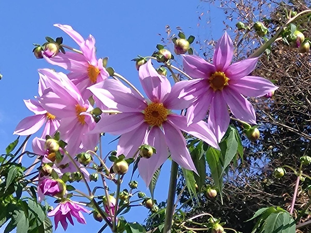 #皇帝ダリア 11〜12月 キダチダリア 日が短くなる晩秋にピンクや紫、白色の花が咲き、八重咲きもあります。 去年は枯れたので、挿し木に挑戦しました。 皇帝ダリアの木をもらい、10〜15cm位カットして、プランターや地植えにしました。 4m以上成長して、庭で皇帝ダリアが綺麗に咲いています。☺ pic.x.com/HjcDHDI4xT