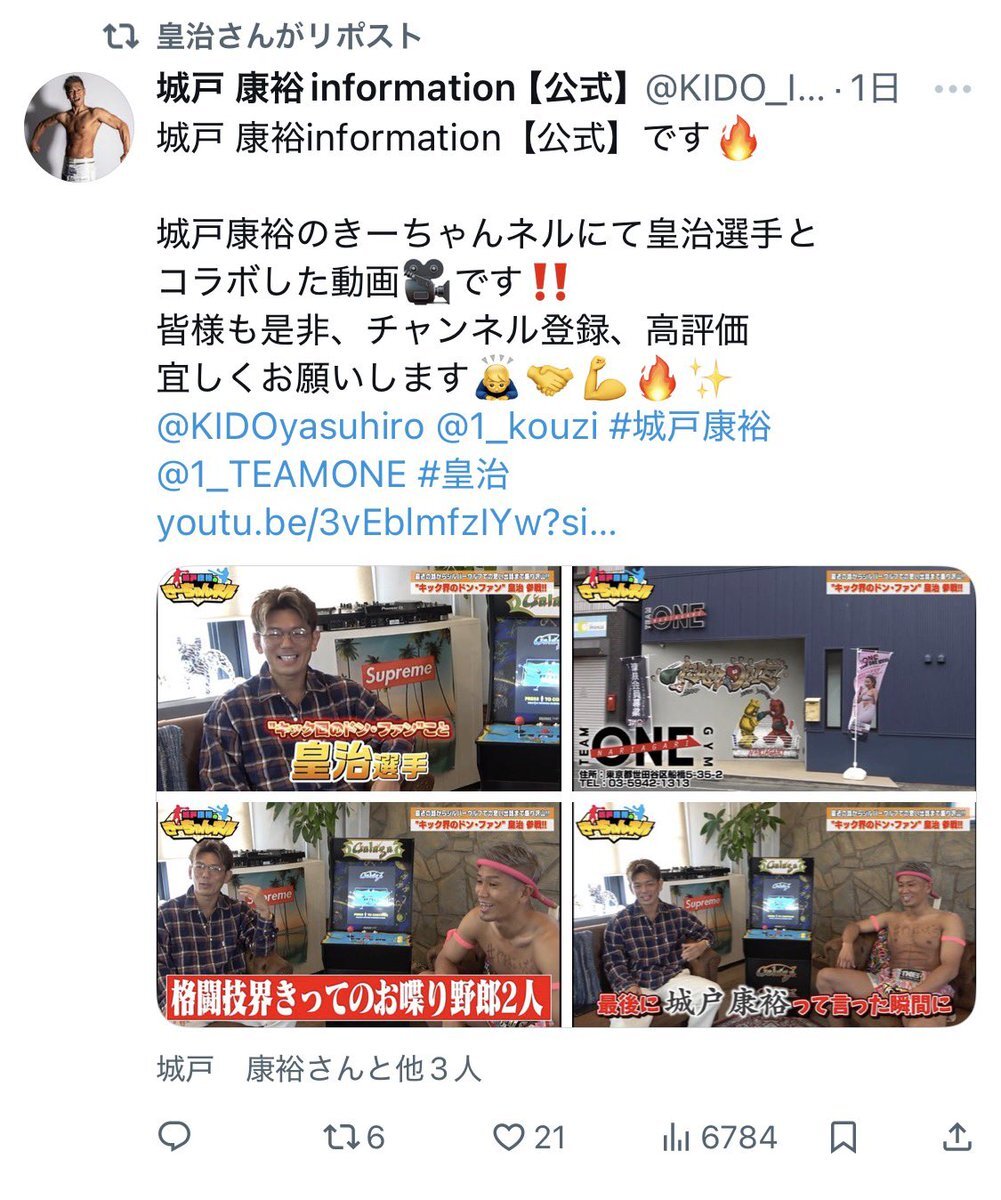 城戸 康裕information【公式】です🔥 皇治選手(@1_kouzi)の皇治チャンネルにも 城戸 康裕は出てます‼️🎥 皆様も是非、ご視聴お願いします🙇♂️🤝 @KIDOyasuhiro @KIDO_INFO @1_TEAMONE #城戸康裕 #皇治 youtu.be/3KmswLJ5uD8?si… pic.x.com/hSeUl6yvSg