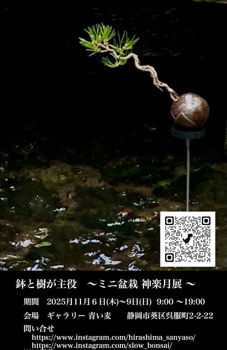 鉢と樹が主役 〜ミニ盆栽 神楽月展〜 期間 2025月11月6日(木)〜9日(日)9:00〜19:00 会場 ギャラリー 青い麦(静岡市葵区呉服町2-2-22) #盆栽 #盆栽鉢 #盆栽展 pic.x.com/rY4Z8TJOwj