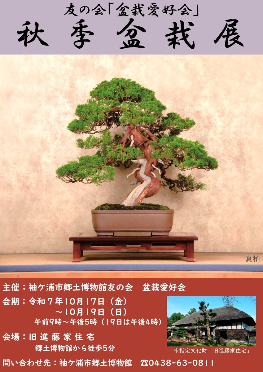 【秋季盆栽展のお知らせ🍂】 郷土博物館友の会の盆栽愛好会が、旧進藤家住宅で盆栽展を開催します。 季節の移ろいを感じながら、秋の草木が織りなす美しい盆栽の世界をご堪能ください。 期間:10月17(金)~19日(日) 9:00~17:00(19日は16時終了) #盆栽展 #旧進藤家住宅 #そではく pic.x.com/CG45aneA2q