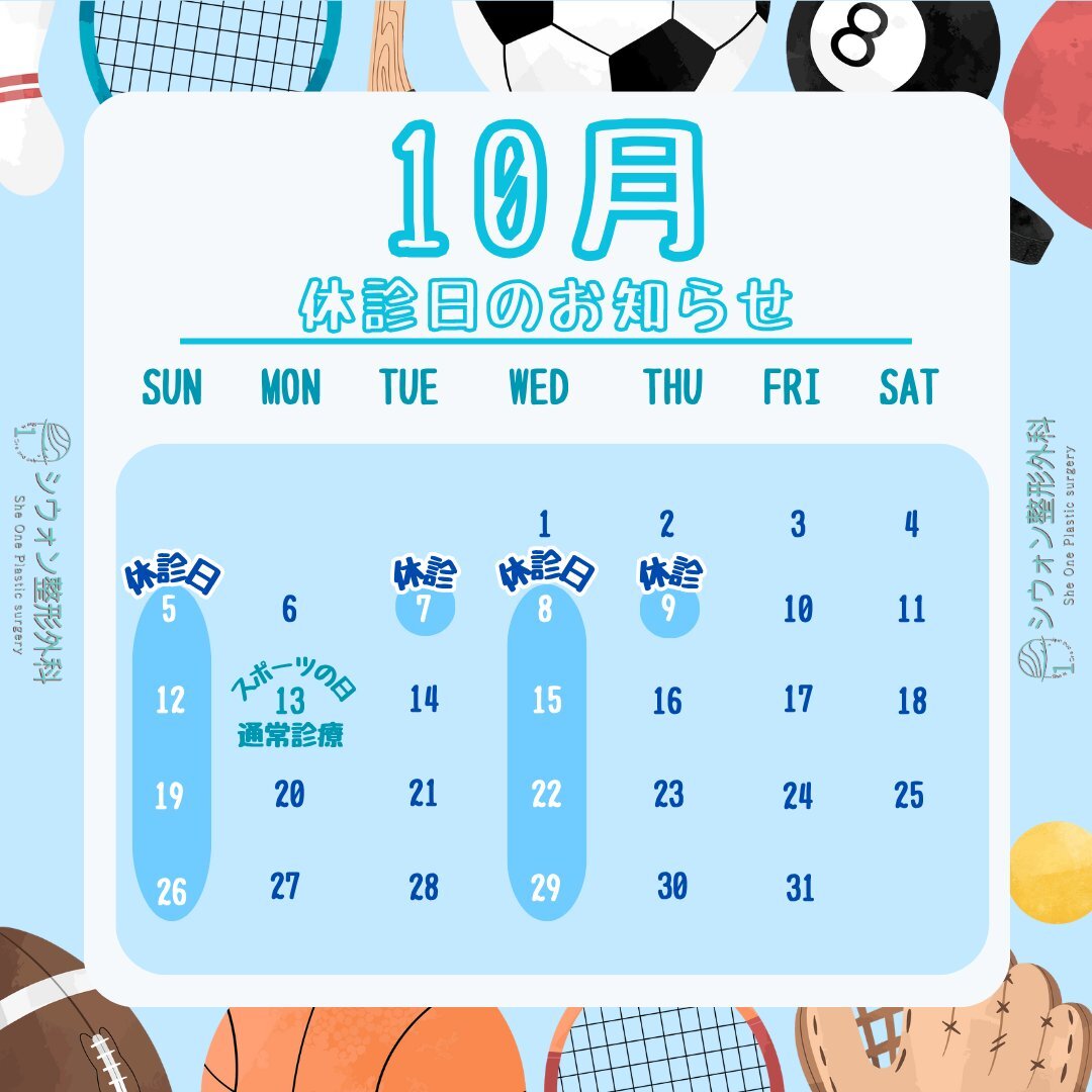 シウォン整形外科です🧐 【10月の休診日のお知らせ】です! 皆様のご来院お待ちしております📷 💻 BLOG:ameblo.jp/sheoneps/ 📲 LINE:lin.ee/o4B8hAb ⏺️Instagram:instagram.com/sheoneps.jp/ #韓国整形 #シウォン整形外科 #韓国美容整形 #渡韓整形 #整形垢 #休診日 #目整形 pic.x.com/x79OayJh52
