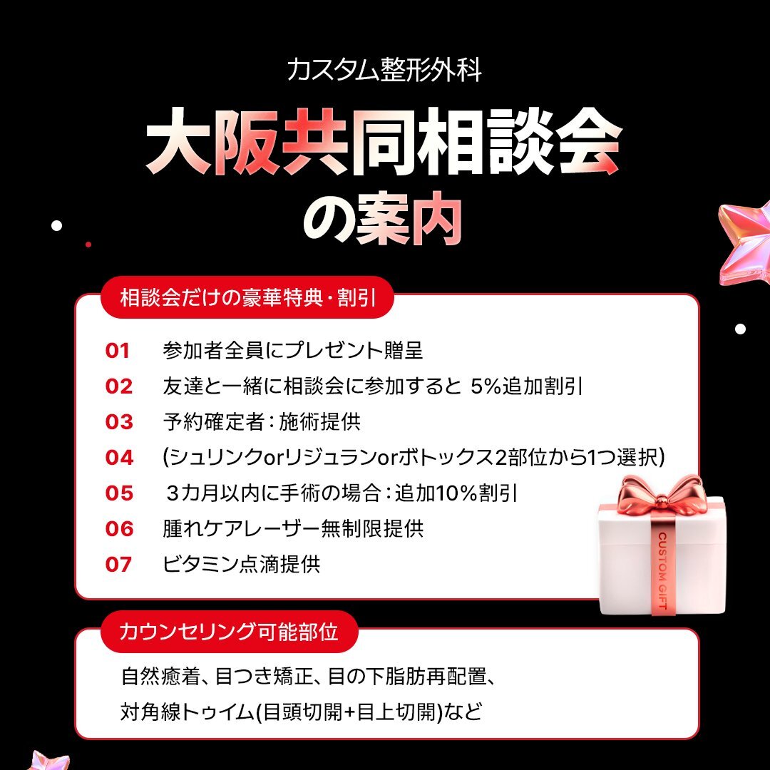 🏯カスタム大阪合同相談会🩷 2026年から「美容整形の税金還付制度」が適用できません💦 相談会に参加して割引までできる大チャンス🎉 また、手術以外の施術提供も💉 💌申込: lin.ee/FyeMHWS #韓国整形 #整形垢 #目整形 #感謝マルチガチャ #あと半日 #ドジャース #無料モニター pic.x.com/fgiwJSJsmk