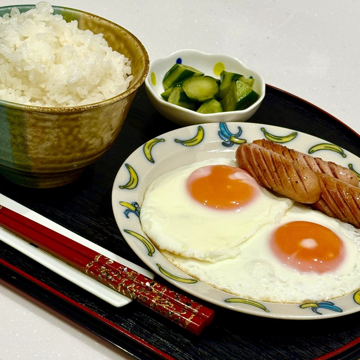 朝からモーレツにお腹ペコなので、炊飯器の残ってた白米、全部食べる‼️ おかずは作るのめんどいから、卵焼いてウインナー添えただけ‼️ きゅうりは昨日作った黒酢漬け‼️ イタダキ━(人˙꒳˙ )━マスッ #朝食 #はらぺこ #白米 #目玉焼き #ウインナー #breakfast #いただきます pic.x.com/Nd0hsKhx9V