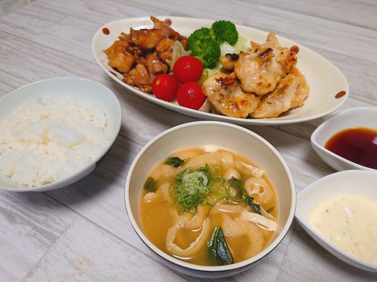 今夜のキッチン山下🍳 チキン南蛮×漬け込み鶏照り焼きのハーフ&ハーフ定食🐔 味噌汁&ご飯で家族も大満足✨ #キッチン山下 #おうちごはん #鶏肉レシピ #目立つことより役に立つこと pic.x.com/WavFjo86Mt